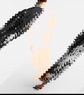 Johanna Ortiz based her eponymous brand in her hometown of Cali, Colombia, to celebrate its unique, colorful soul. This maxi dress stands out with its geometric print, flowing silhouette, and delicate seashell-trimmed details.