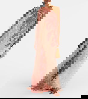 This vibrant kaftan from Johanna Ortiz has long, flowy sleeves and comes in a maxi length. The belted design features an all-over multicolor print and a cutout front that allows for airflow.