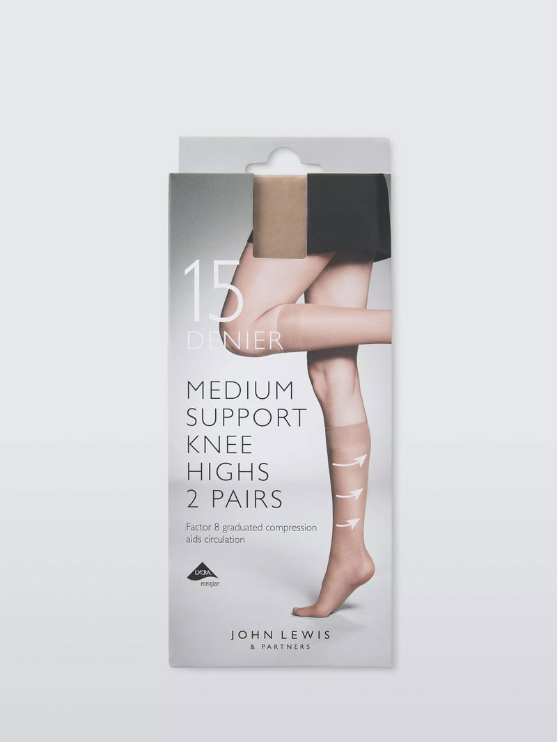 15 Denier Medium Support Knee High Tights, Pack Of 2, Black