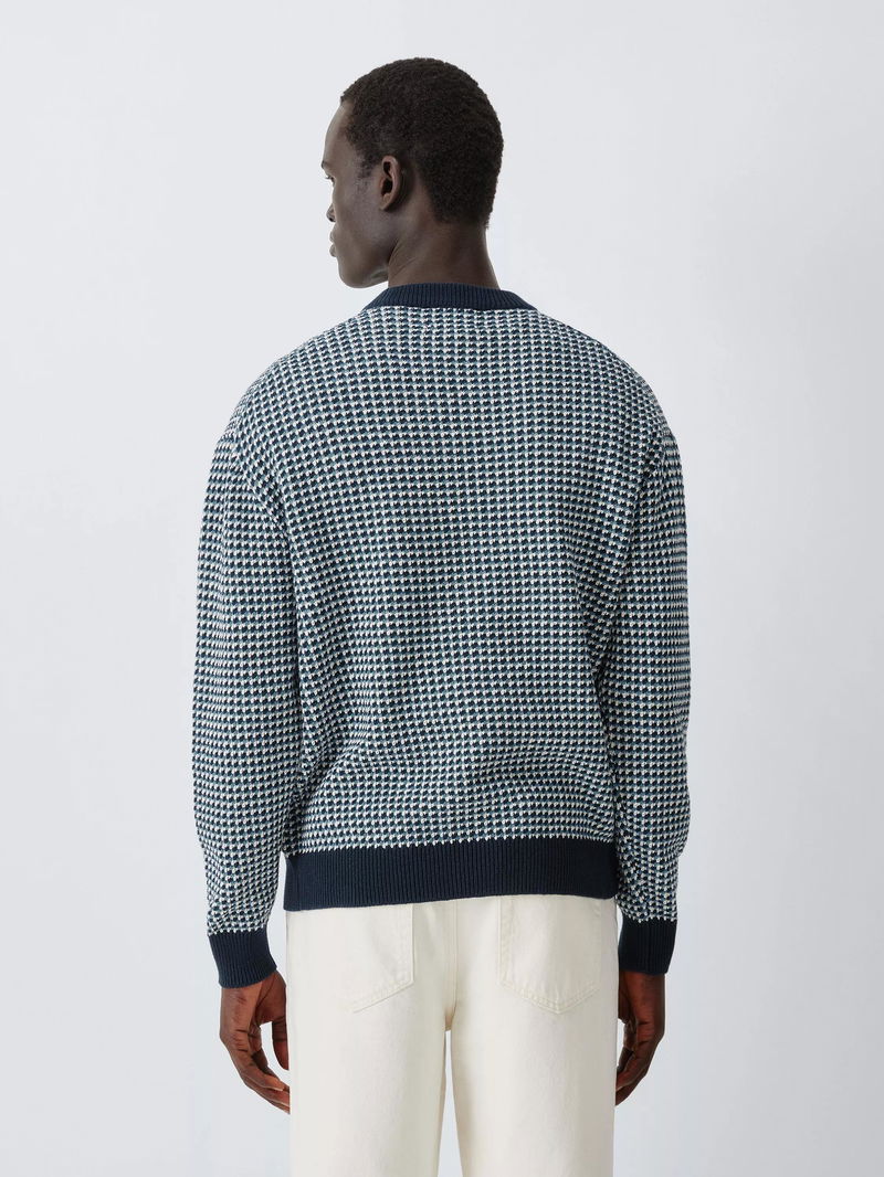 3 Colour Micro Stitch Wool Blend Crew Neck Jumper, Blues