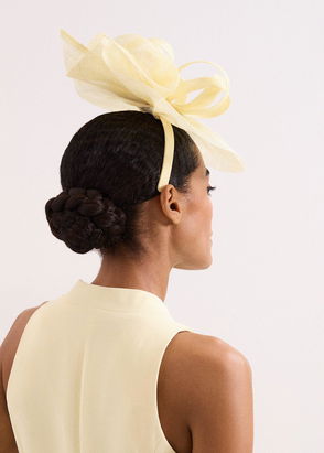 Description: A fashionable pillbox-style fascinator with textured detailing and structured loops. Perfect for a wedding or a day at the races. Materials: 100% abaca Product Code: 113012963