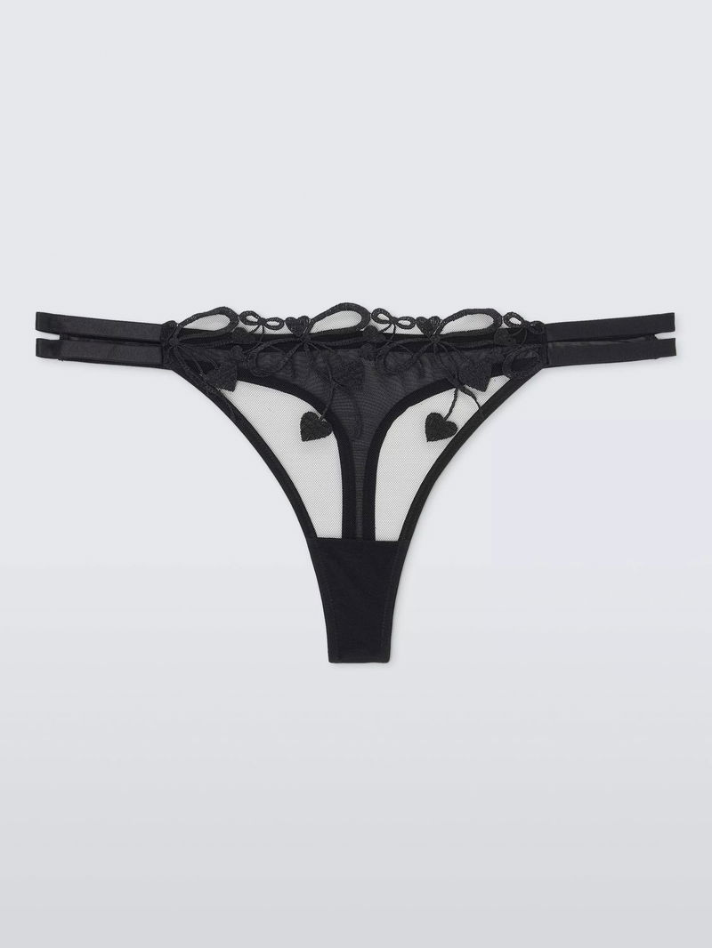 Alexis Bow Embroidered Thong, Black