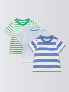 Keep baby looking cute with this handy pack of two t-shirts from our collection. Made from organic cotton for a soft and cosy feel, these tops and feature ribbed trims and button fastenings on the shoulder for fuss-free dressing. With one classic stripe design and one with an adorable Rhino motif, you can mix and match throughout the week.