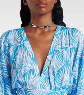 This kaftan is made from a soft crinkle fabric with a beautiful drape and breezy feel. A timeless design for elegant coverage, we've cut it to a relaxed shape with a deep V-neckline and added delicate lace trim along the neckband, centre front and cuffs for a tactile touch. Ensuring you get the coverage you need, we've styled it with three-quarter length sleeves that hit below the elbow and a curved longer length back that gives an effortless swing through the hem.