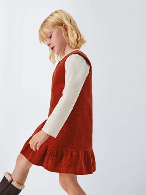 This classic pinafore dress from our collection is perfect for woodland walks and playdates in the park.Cut from cotton, this soft corduroy dress is comfortable and easy to wear. It fastens with adjustable straps and buttons to the side and is completed with a pocket for stashing essentials. Layer over a striped tee and team with colour-pop tights for a fun finish.