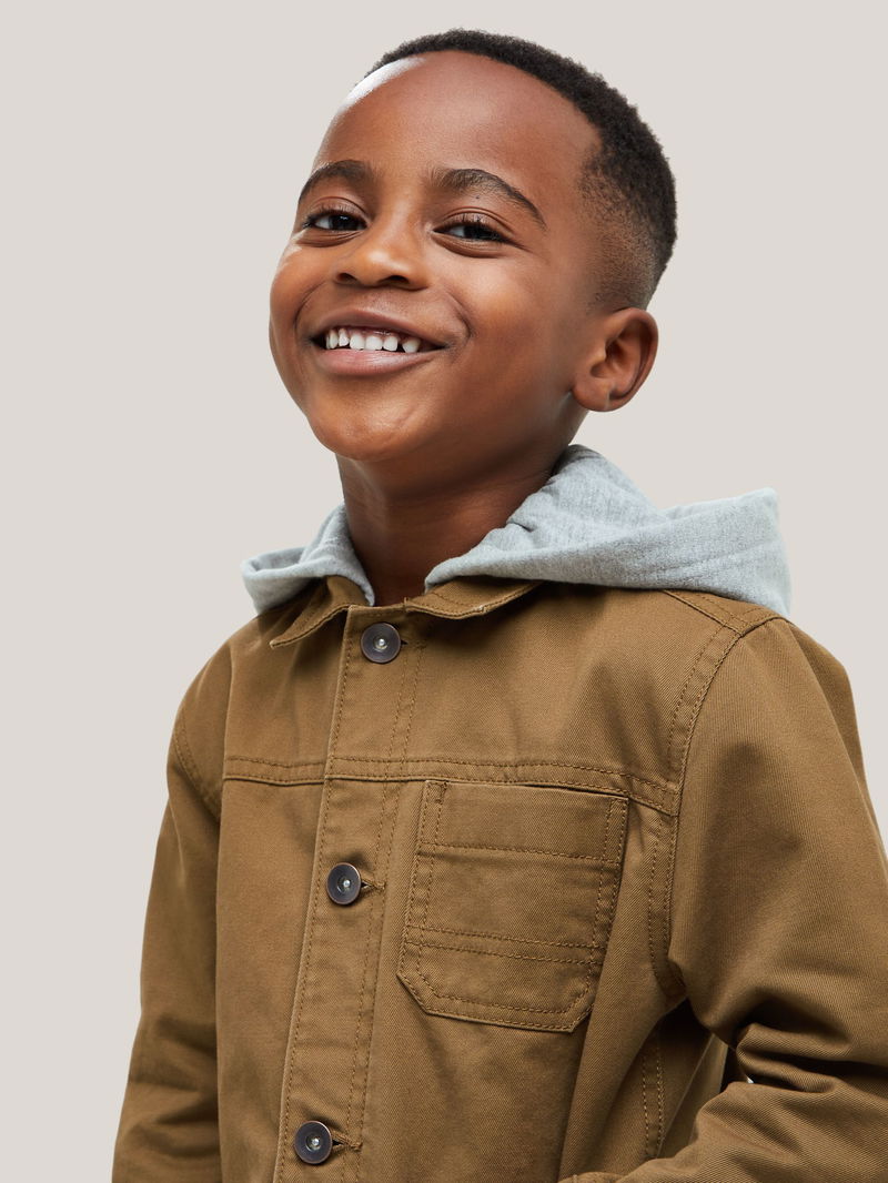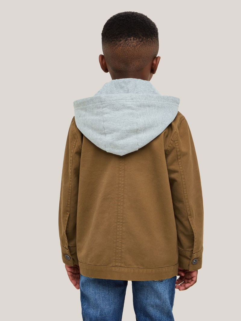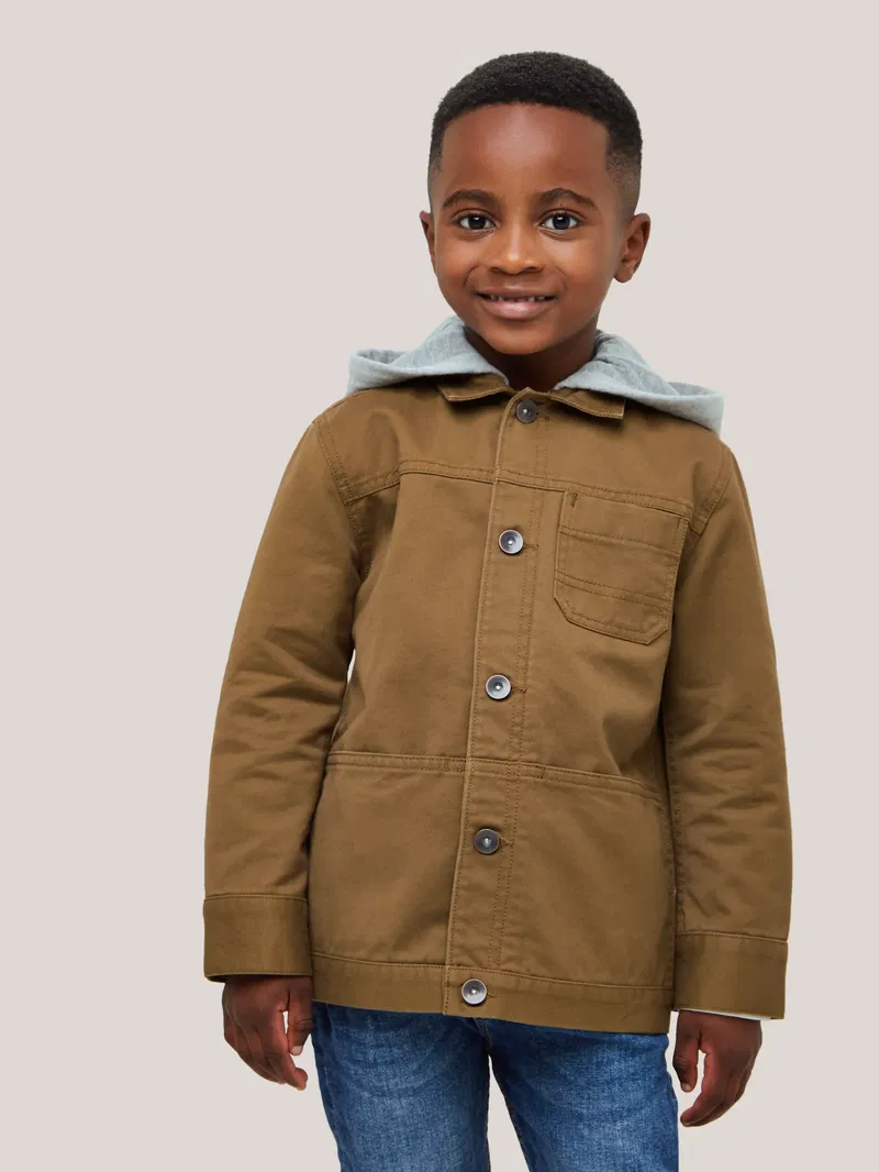 Is it a shirt or a jacket? Well, it's both! John Lewis designed this 100% cotton piece with a collar and attached jersey with hood with button placket and chest patch pocket too. Featuring profile stitching throughout, it's great for styling with denim.