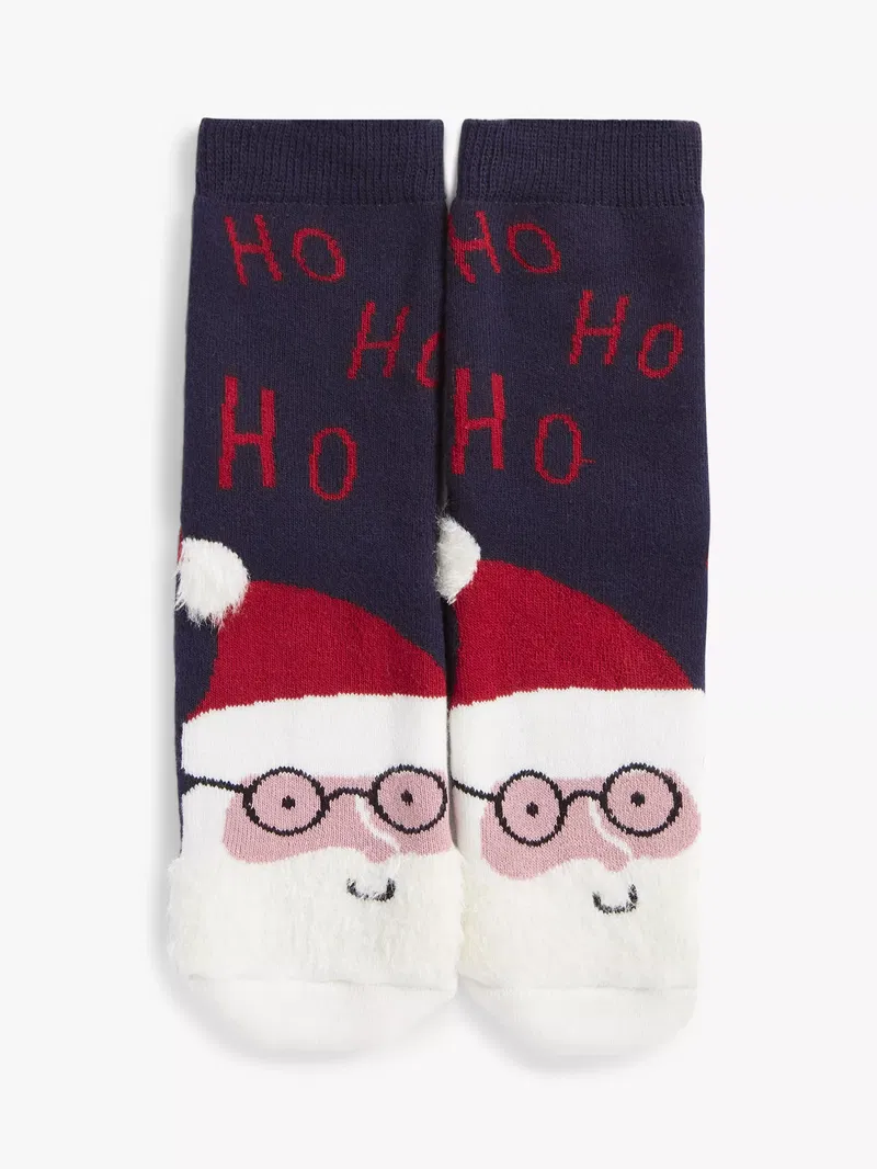 Bring the joy of Christmas to your little one with these cute Santa slipper socks. Made from a cotton-rich blend, they will love getting ready for bed in these festive socks complete with a 3D Novelty Santa on the foot.