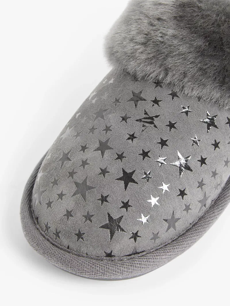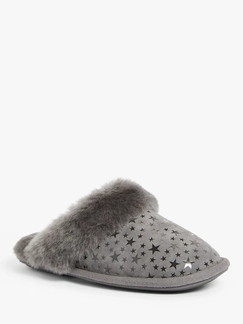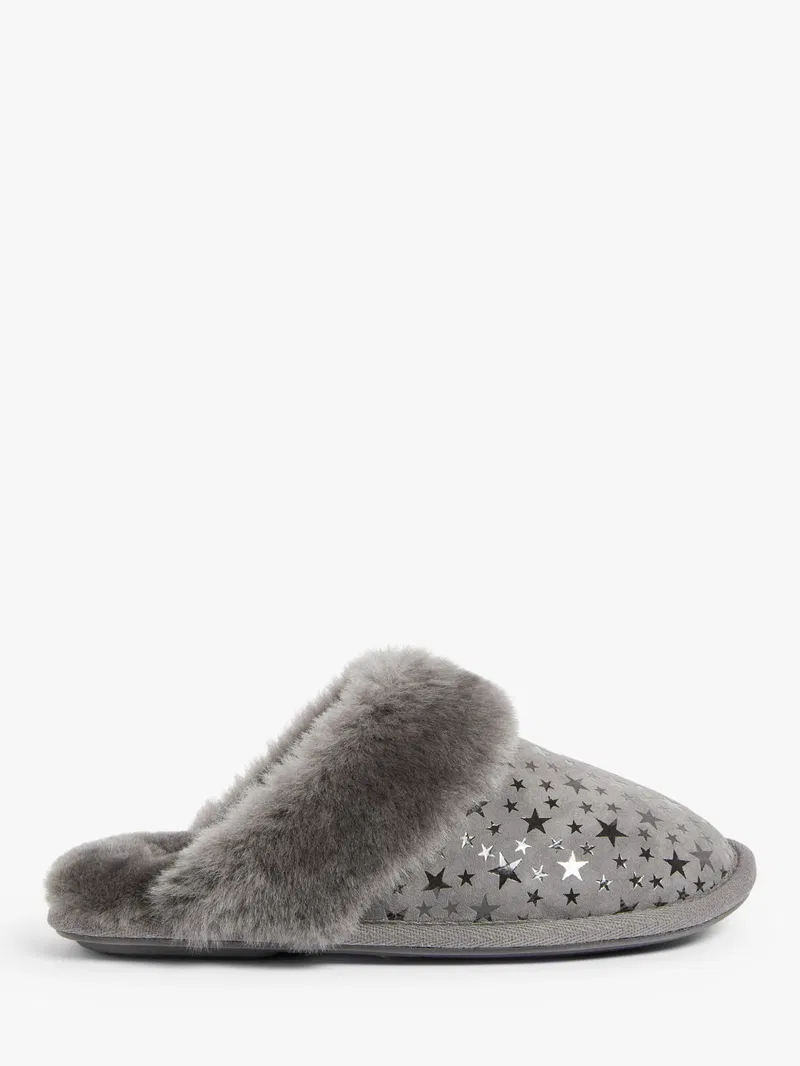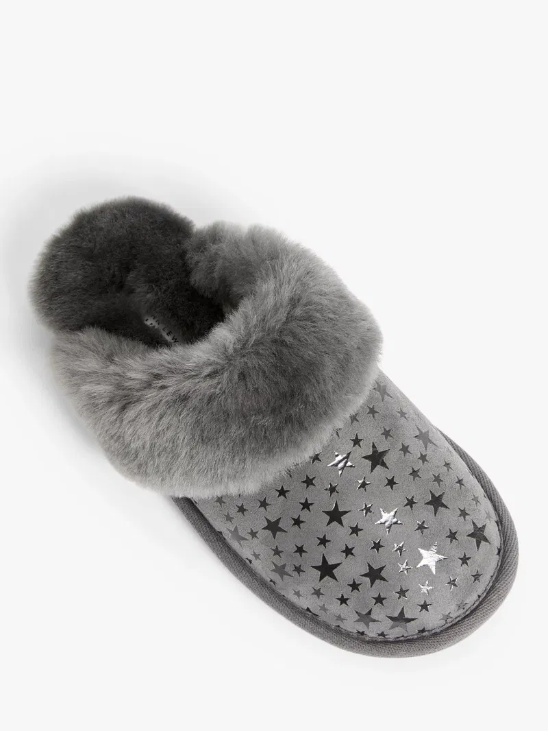 Slip your feet into these soft and cosy sheepskin slippers and keep them warm and toasty in cooler weather. A classic shape featuring a fun star pattern, the slippers are completed with a flat sole.