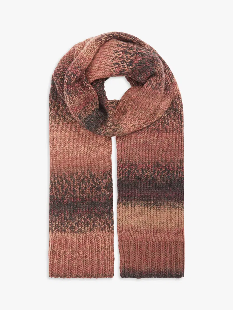 This long scarf is produced using space-dyed yarn. Each piece is individual and unique due to the nature of the yarn so that your look will be certainly one-off. The chunky knitted structure will keep you warm and snug on cold windy days.
