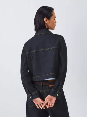 Cropped jacket with tie waist detailing. Blouson sleeves. Pure cotton twill. Machine washable. Layer over midi dresses and sandals to give them more of a rock-chick edge.
