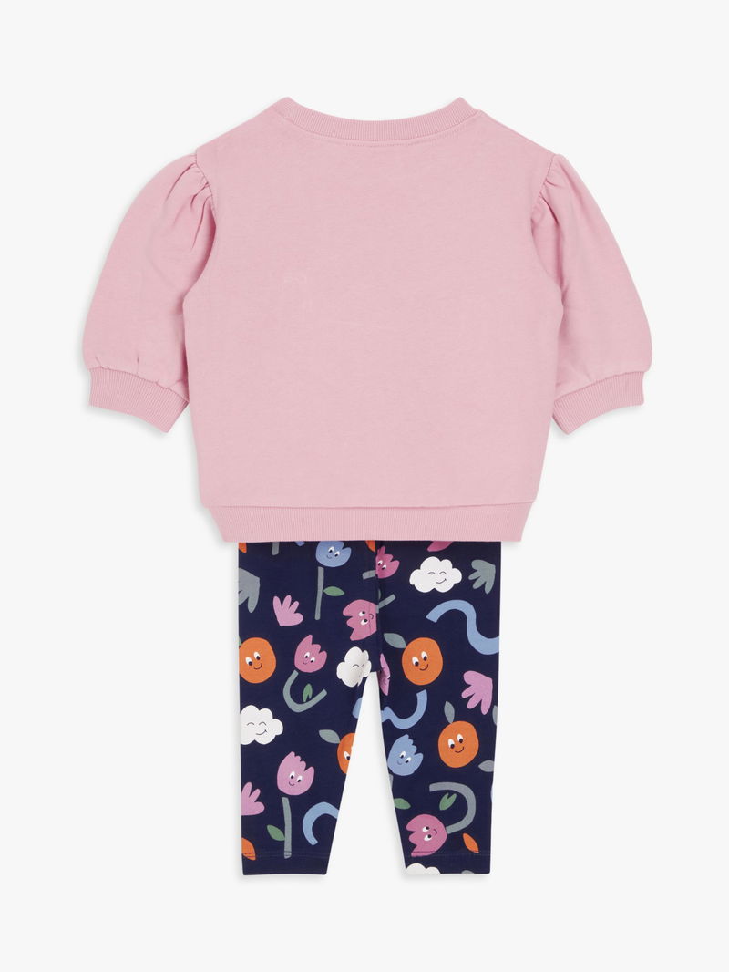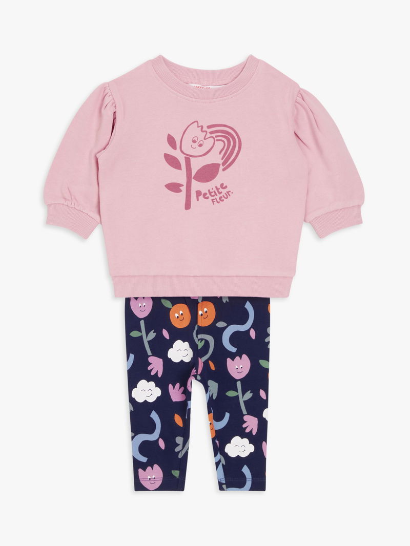 With a sweet 'Petite Fleur' print, this jumper and legging set is a comfy and versatile style ideal for play dates. Made from cotton that's gentle on sensitive skin, it has an elasticated waist, hemline and cuffs for a great fit.