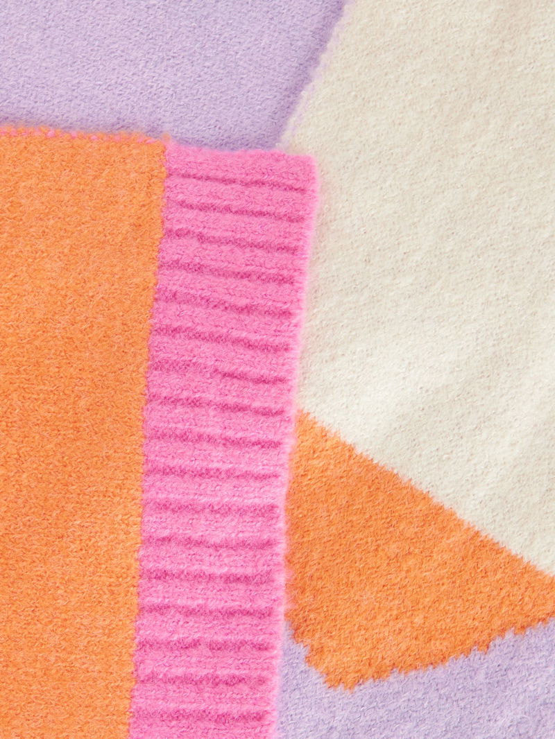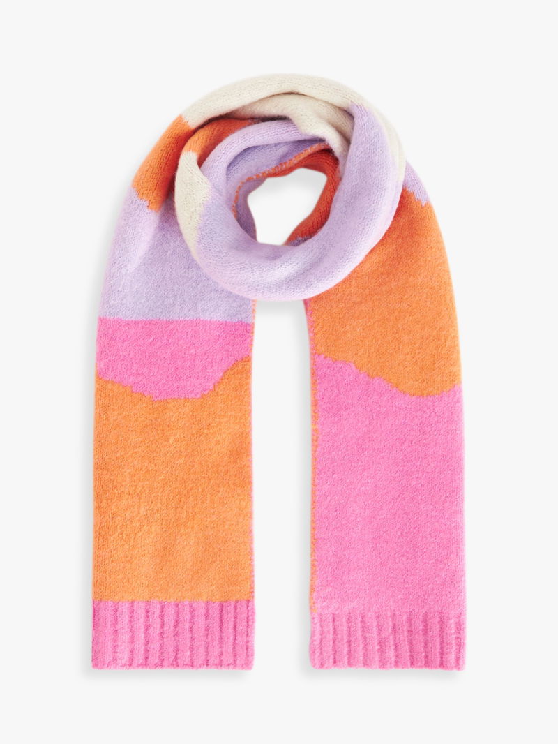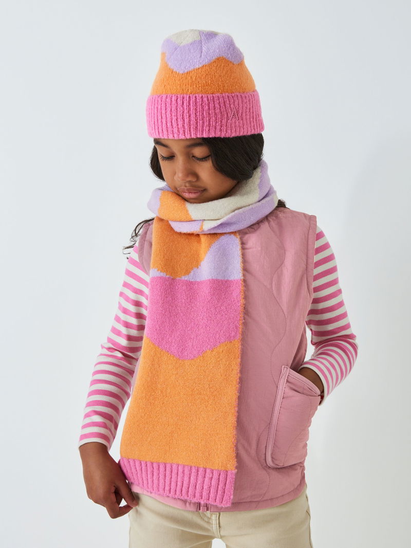 Mixing vibrant colours in an attractive wavy pattern, this scarf is made with super soft knitted yarns to keep them nice, colourful and snug on cold days. Match with the knitted hat and gloves for a lovely set.