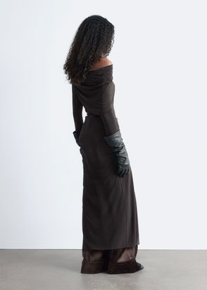Metallic toned midi dress. Scoop neckline, sleeveless. Stretchy, lightweight fabric.