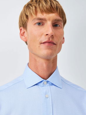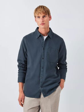 A classic shirt, decorated with stripes and finished with button fastenings and a pocket at the chest.