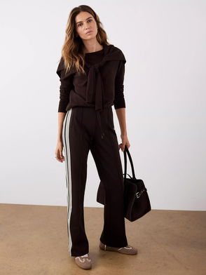 Side stripe trousers with elasticated waist. Curate a sports luxe vibe by teaming with trainers & oversized shirt.