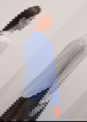 Striped boyfriend shirt, made of 100% cotton. Styled with two front pockets, a collar, button-through front and a dropped hem at the back for extra coverage.