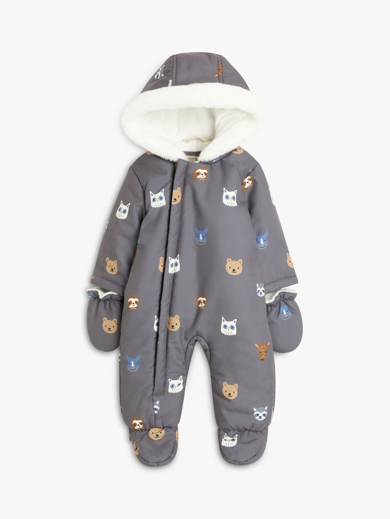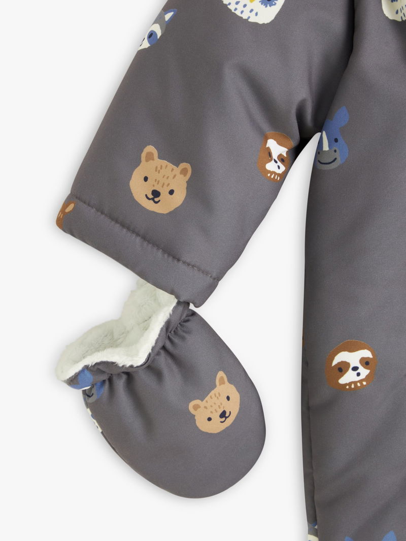 Protect your little ones from the harsh winter weather with this water-resistant snowsuit from John Lewis' collection. The soft brushed outer fabric is covered in a sweet animal print while the inside has a cosy teddy fleece lining for extra warmth and protection on those cold winter days.