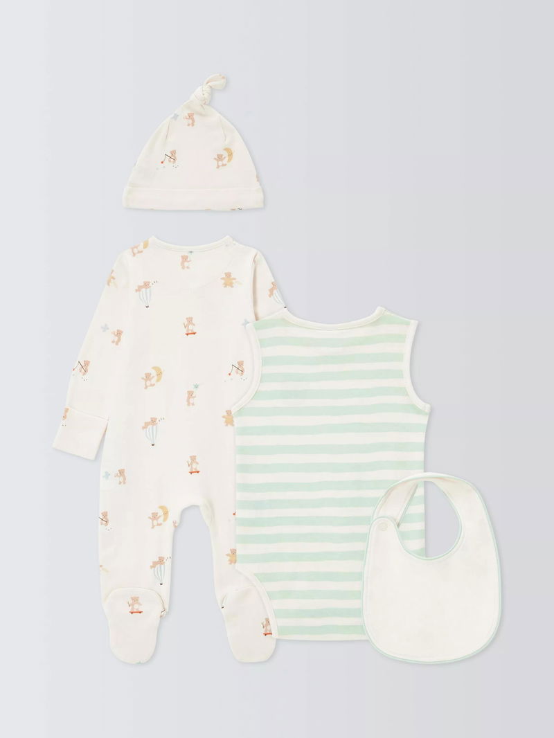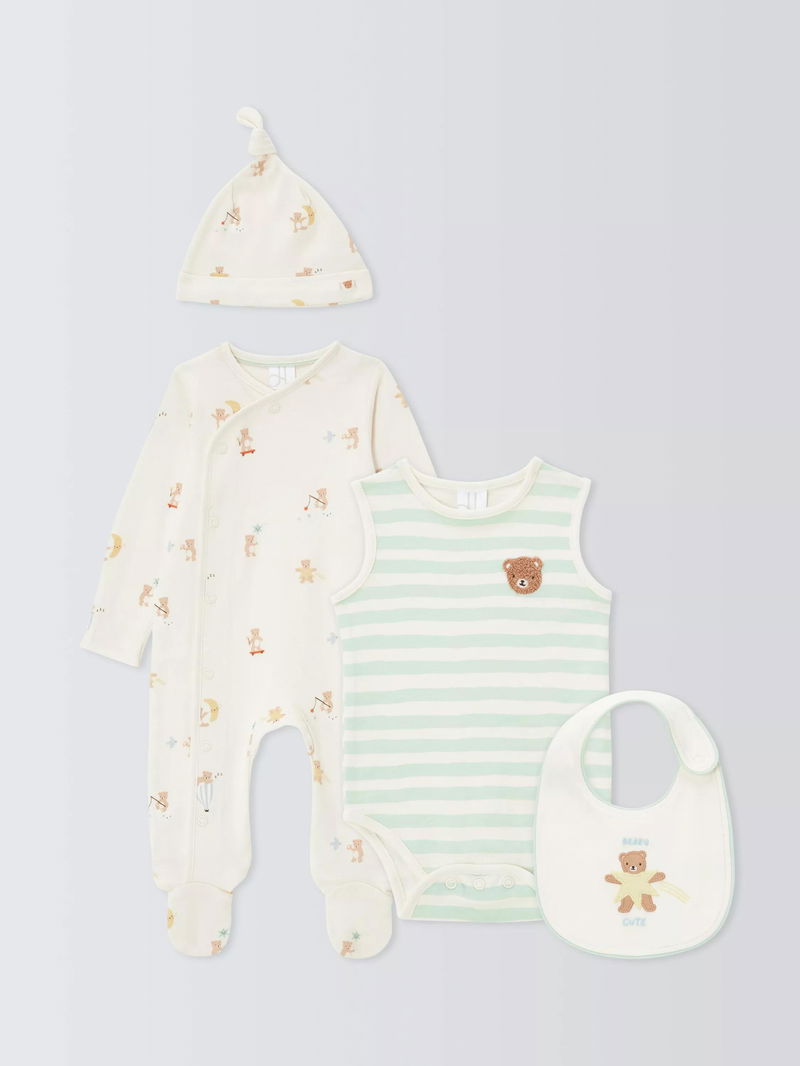 Baby Bear Sleepsuit, Bodysuit, Hat & Bib Set, Multi
