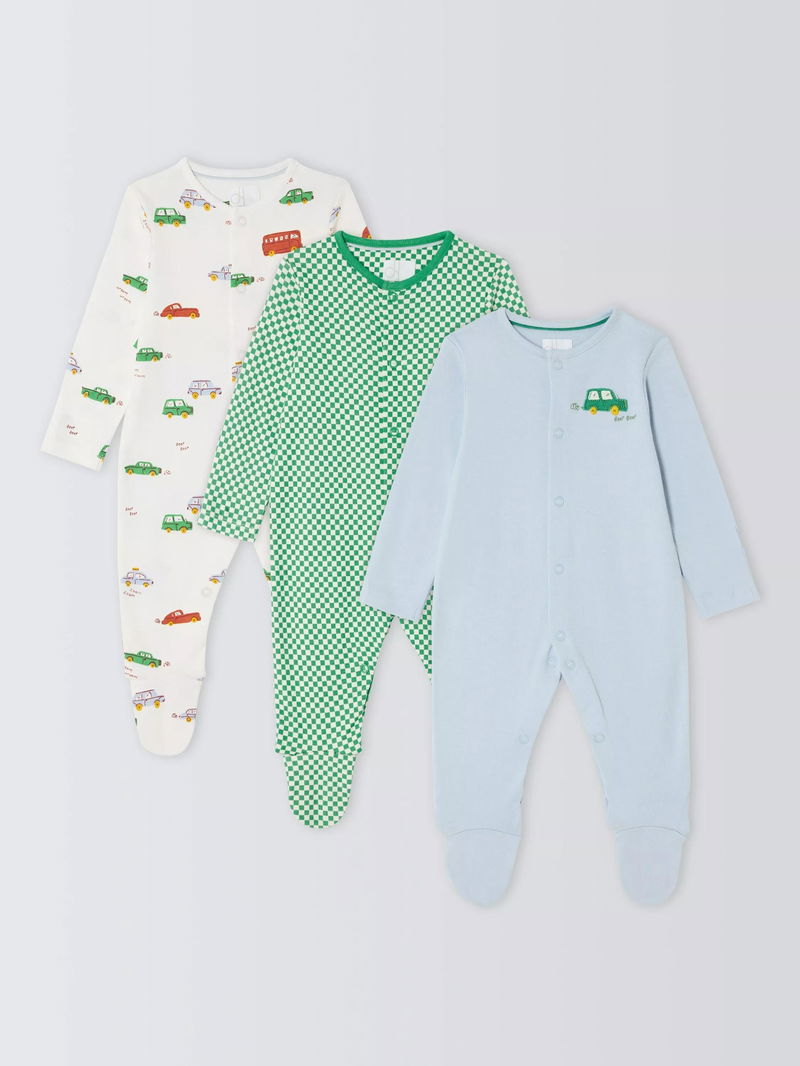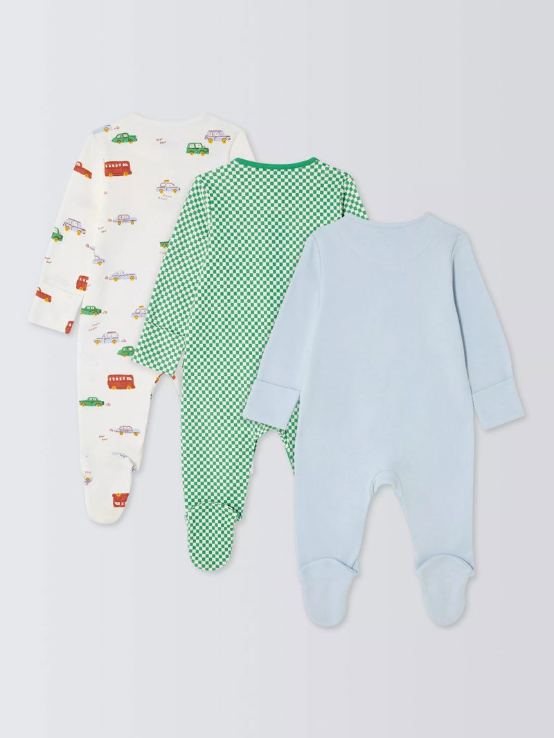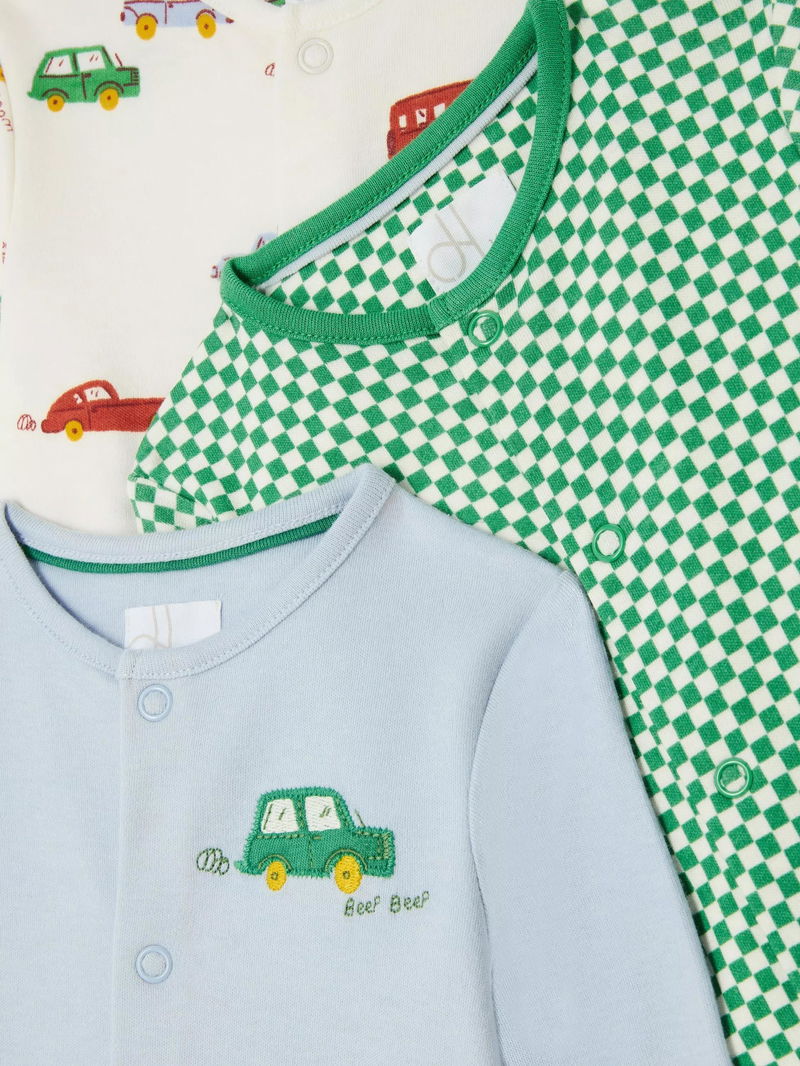 Baby Car Check Sleepsuits, Pack Of 3, Blue
