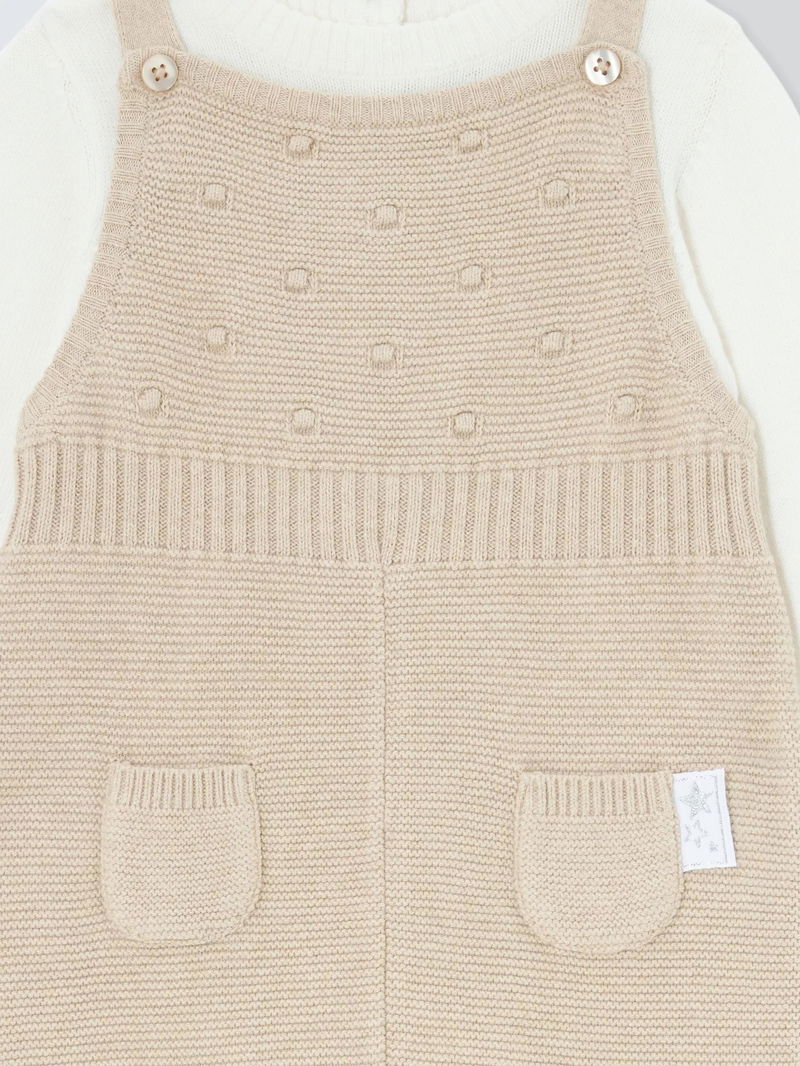 Baby Cashmere Blend Dungarees & Long Sleeve Top Set, Brown