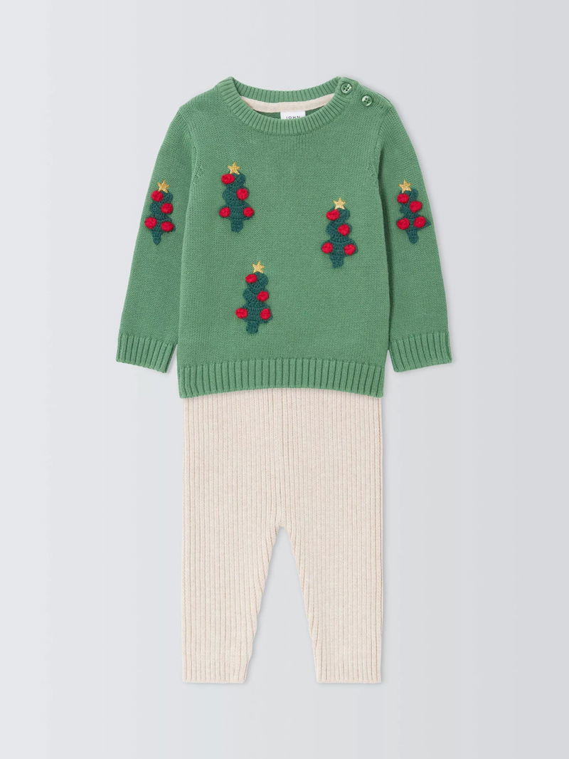 Baby Christmas Tree Crochet Knit Jumper & Leggings Set, Green