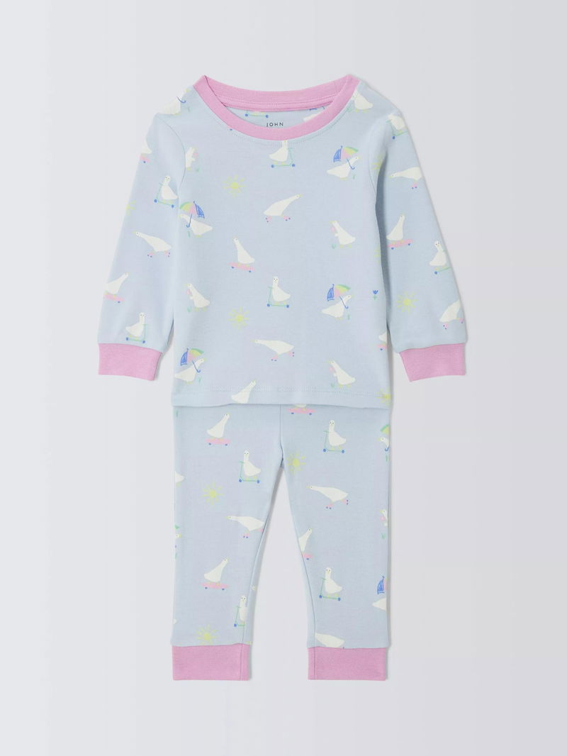 Baby Cotton Duck Print Pyjama Set, Blue Multi