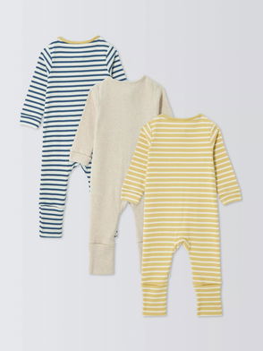 Made from soft and breathable cotton with a subtle ribbed texture, these sleepsuits are a staple addition to any baby's wardrobe. Designed with a two-way zip-through front (no faffing about with poppers here), you can zip from either the top or the bottom making them brilliant for speedy nappy changes, especially in the dark. Plus with the enclosed feet you won't need to worry about socks being kicked off ever again. Good to know: These garments come up on the large side of a size so we would suggest buying one size down. To maintain the best appearance and shape, tumble dry after washing.