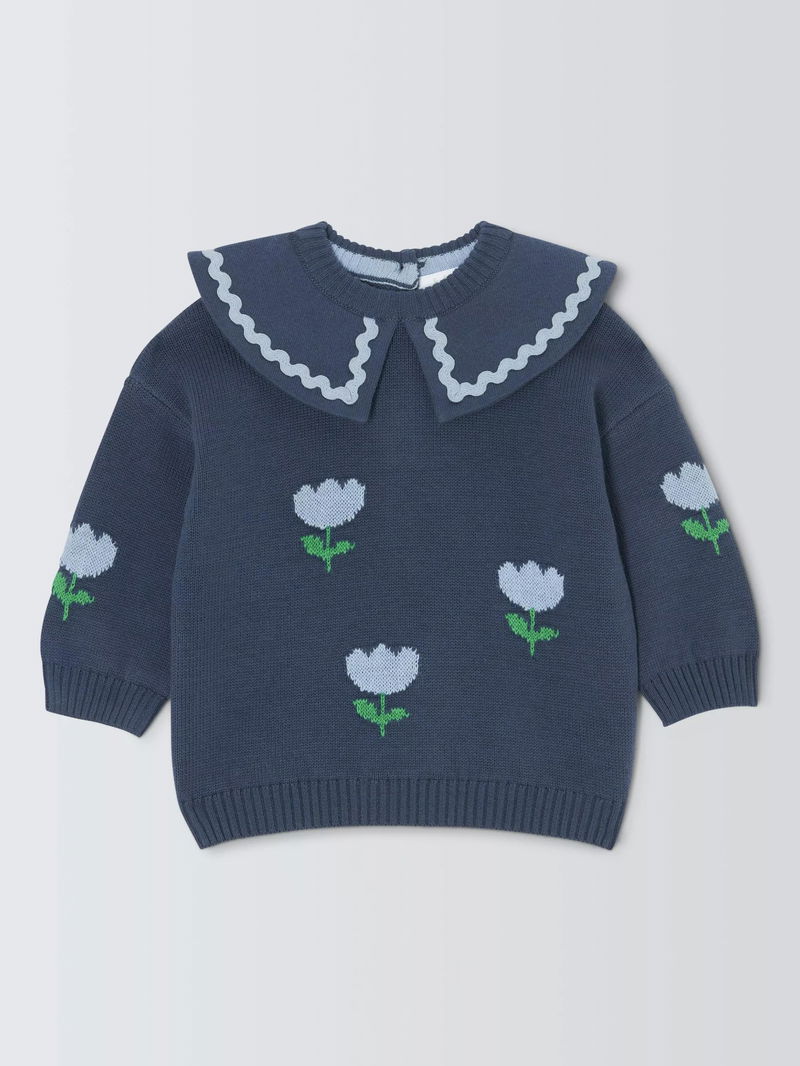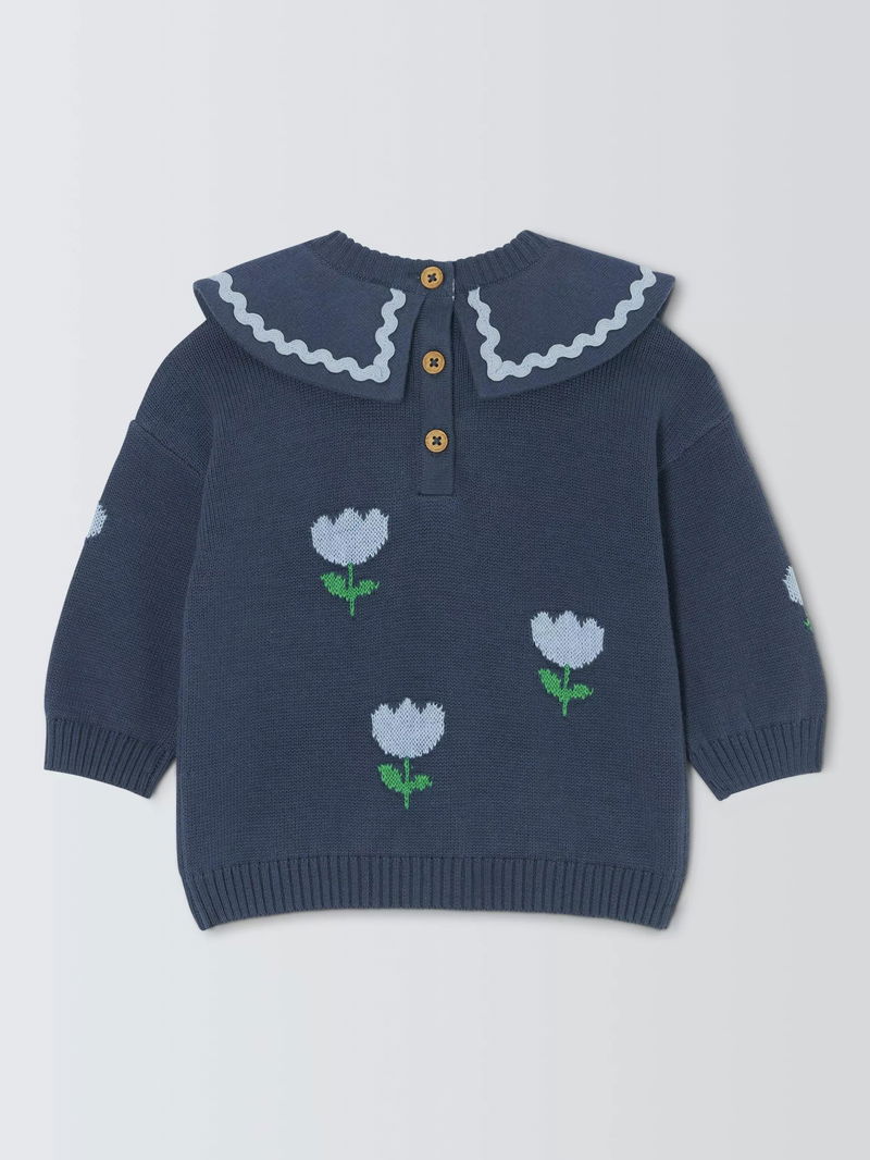 Baby Floral Ric Rac Collar Jumper, Blue