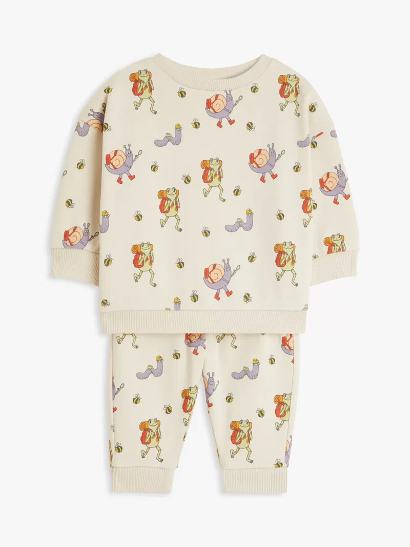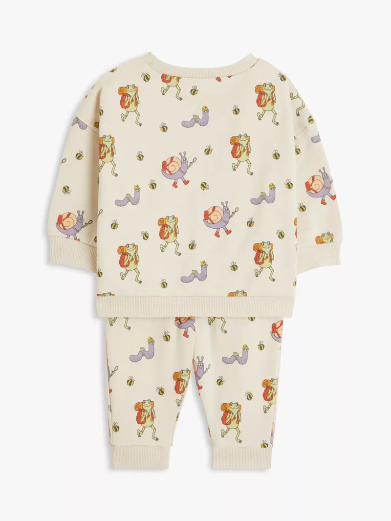 A ready-made outfit, this set contains a jumper and matching joggers both covered in our fun. Happy Campers print with snail, worm, and bee friends. Thoughtfully designed, the set has elasticated cuffs, waistline, and neckline that allow for easy dressing and nappy changes while also allowing for some give during wear. The set is made from pure cotton that's gentle on sensitive skin so it's comfortable for baby to wear all day long. For added versatility, it can be mixed and matched with other items for greater style choices. With great prices and great design, our new brand offers style and quality for modern living today. Whatever you need, there's joy to be found in Anyday.