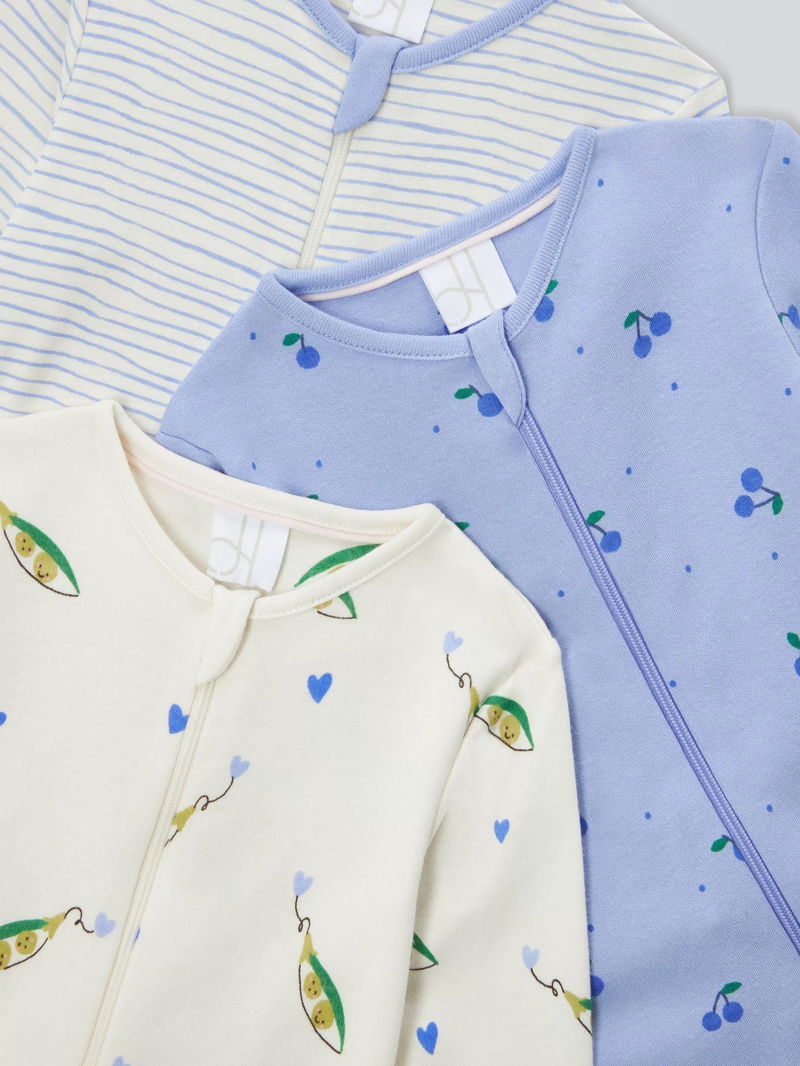 Baby Peas Sleepsuits, Pack Of 3, Blue