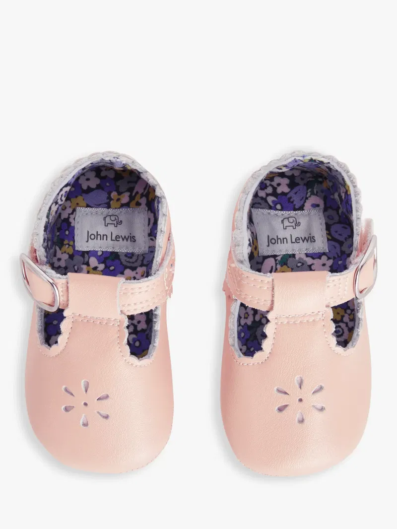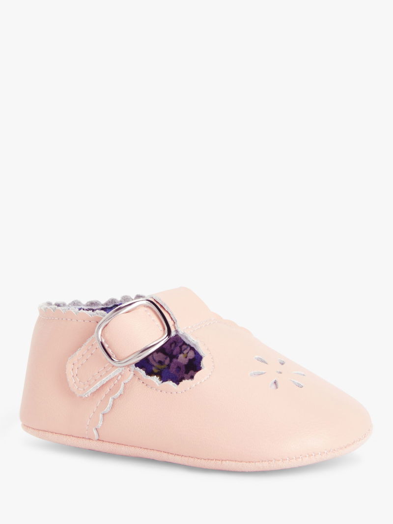 Complete their outfit with these adorable pre-walker t-bar shoes from our collection. Easy to pair with most pretty outfits, the classic leather style baby shoes have a mock buckle rip-tape strap that allows for easy fitting. While they're not meant to be worn outside, they do have an anti-slip sole to protect little ones who might want to see what the fuss about this whole walking thing is about.