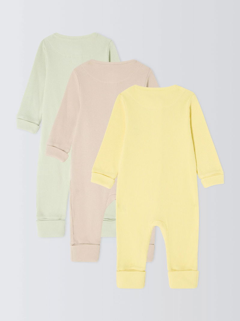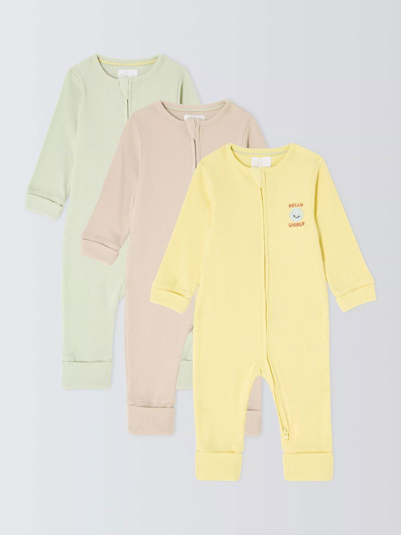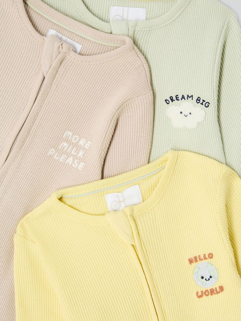 Baby Ribbed Embroidered Two Way Zip Sleepsuit, Pack Of 3, Multi