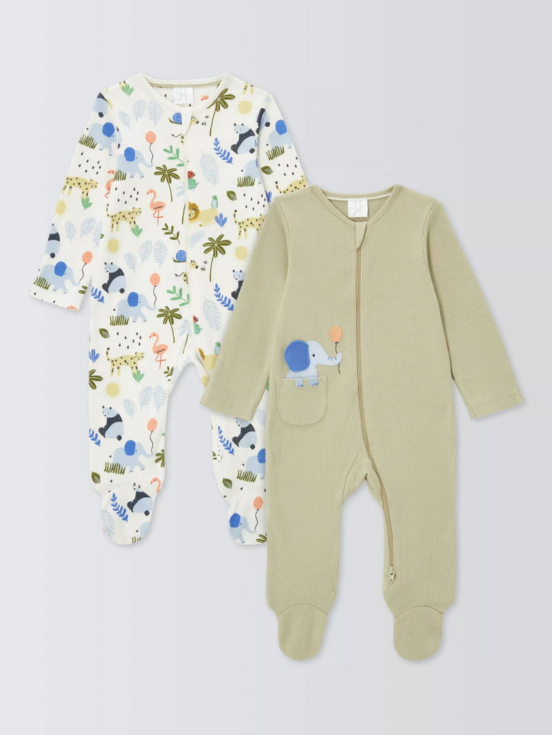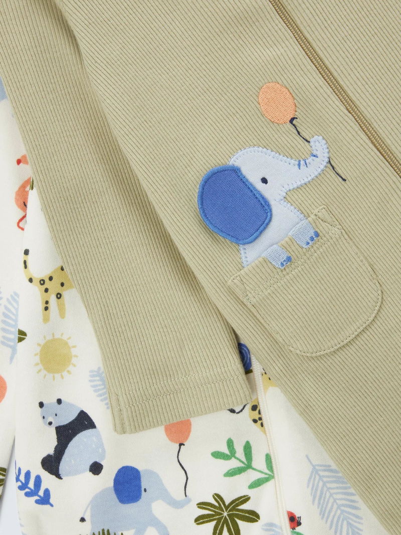 Baby Safari Sleepsuits, Pack Of 2, Multi
