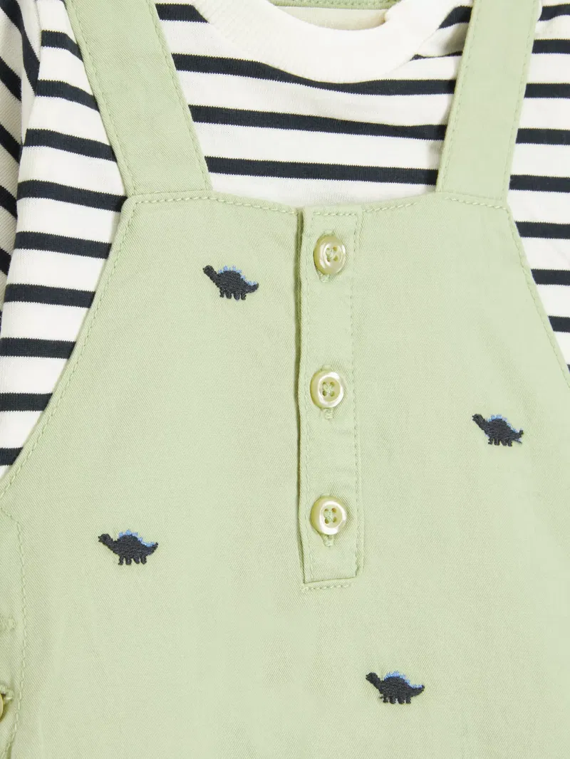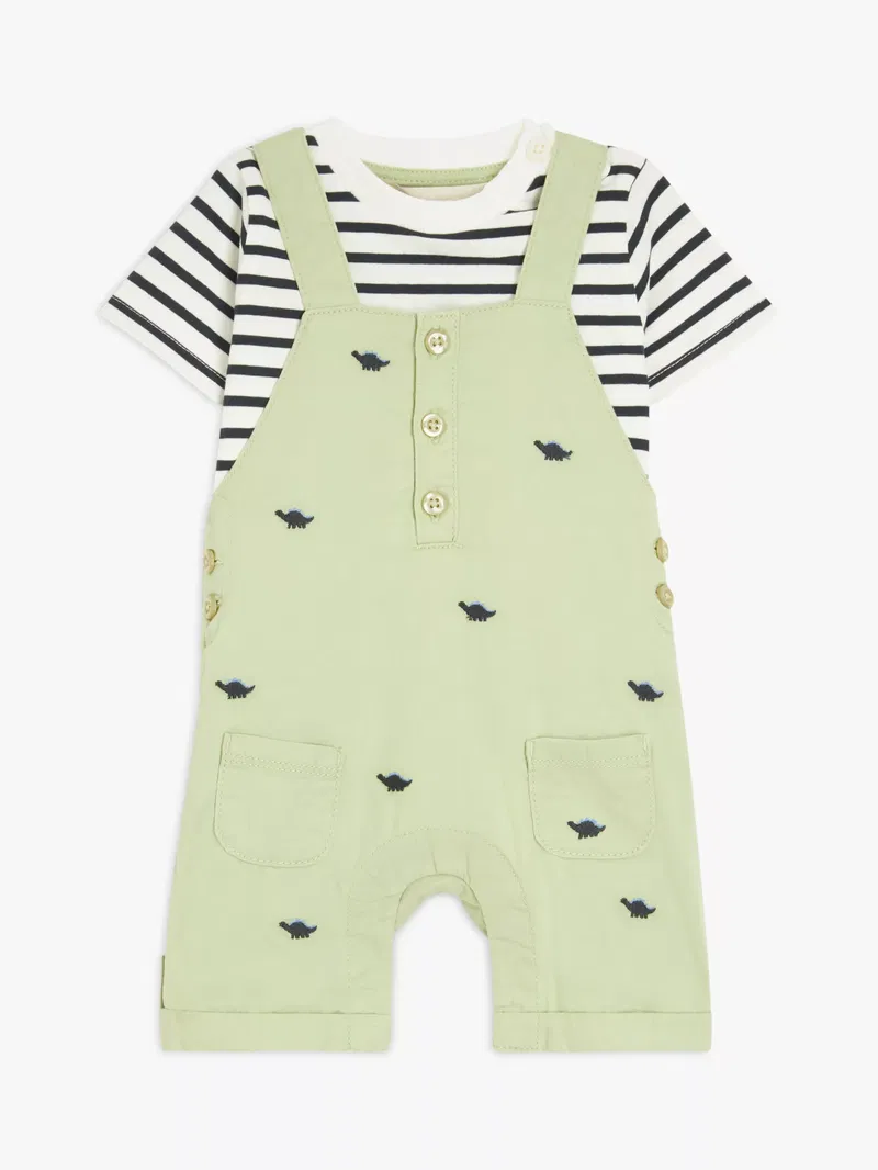 Classic stripes and fun dinosaurs complement each other in this great warm weather outfit. The two piece set is made from pure cotton that's soft, breathable, and gentle on sensitive skin.