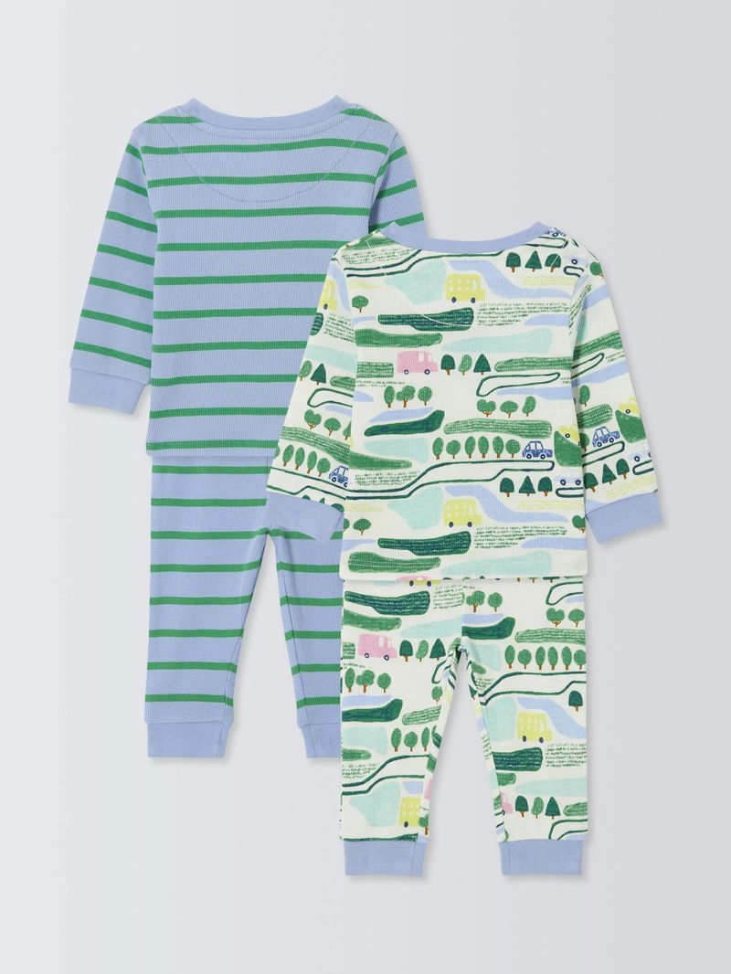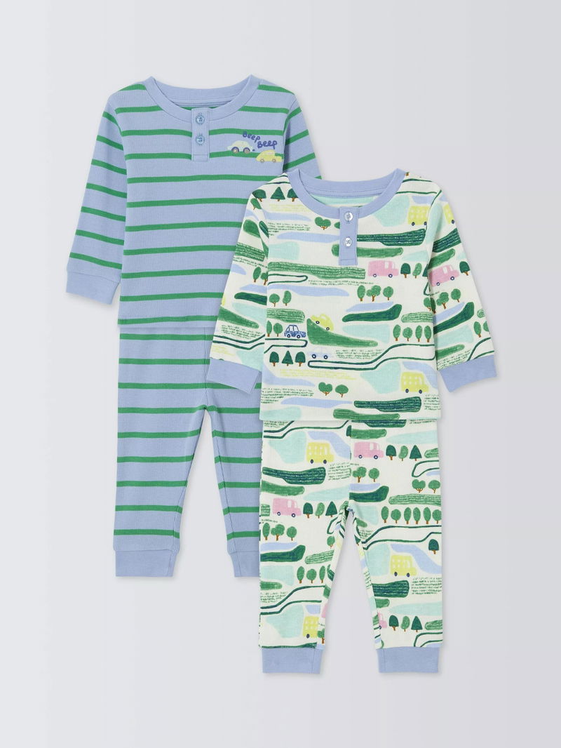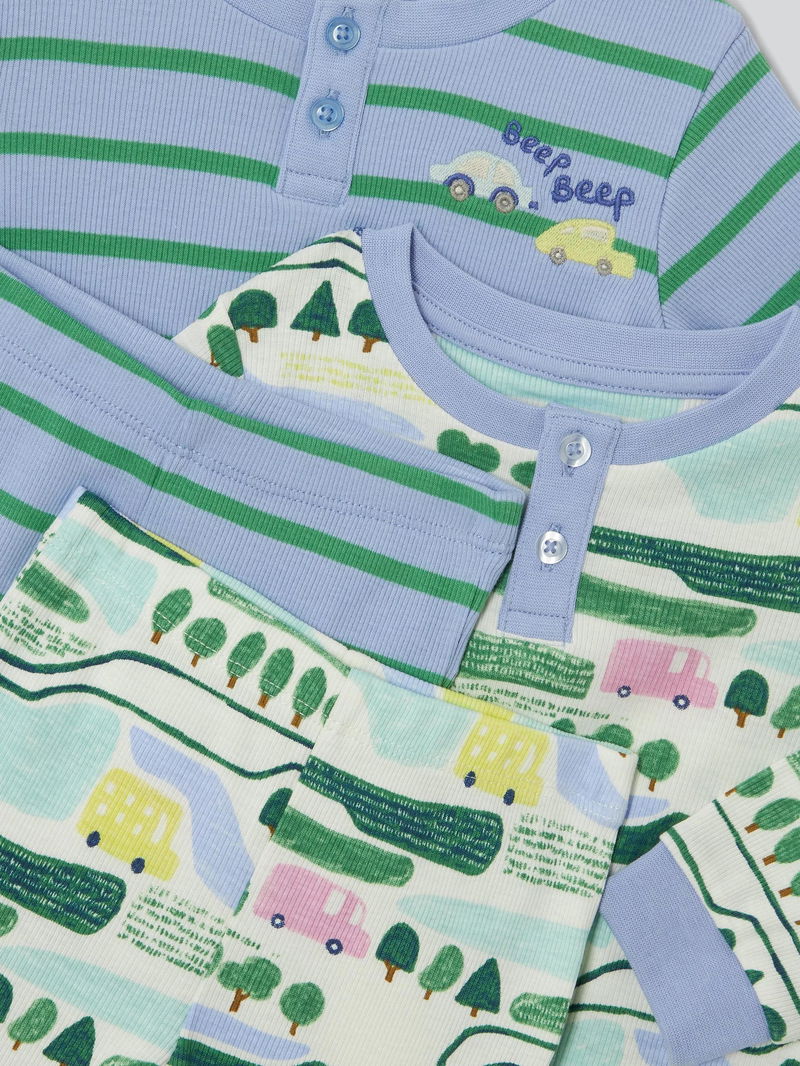 Baby Vehicle Ribbed Pyjamas, Pack Of 2, Blue Multi