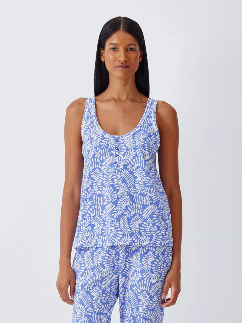 Botanical Jersey Cropped Pyjama Set, Baja Blue