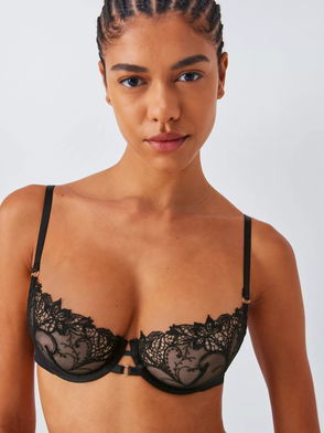 Available in a range of zesty colours, our Caroe lingerie features floral lace that achieves the perfect balance between flirty suggestion and modesty. This is the padded version of our Caroe bra. It's high apex offers support whilst creating a sleek line and the centre bow and picot trim add feminity.