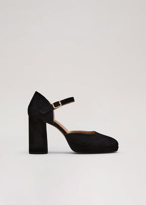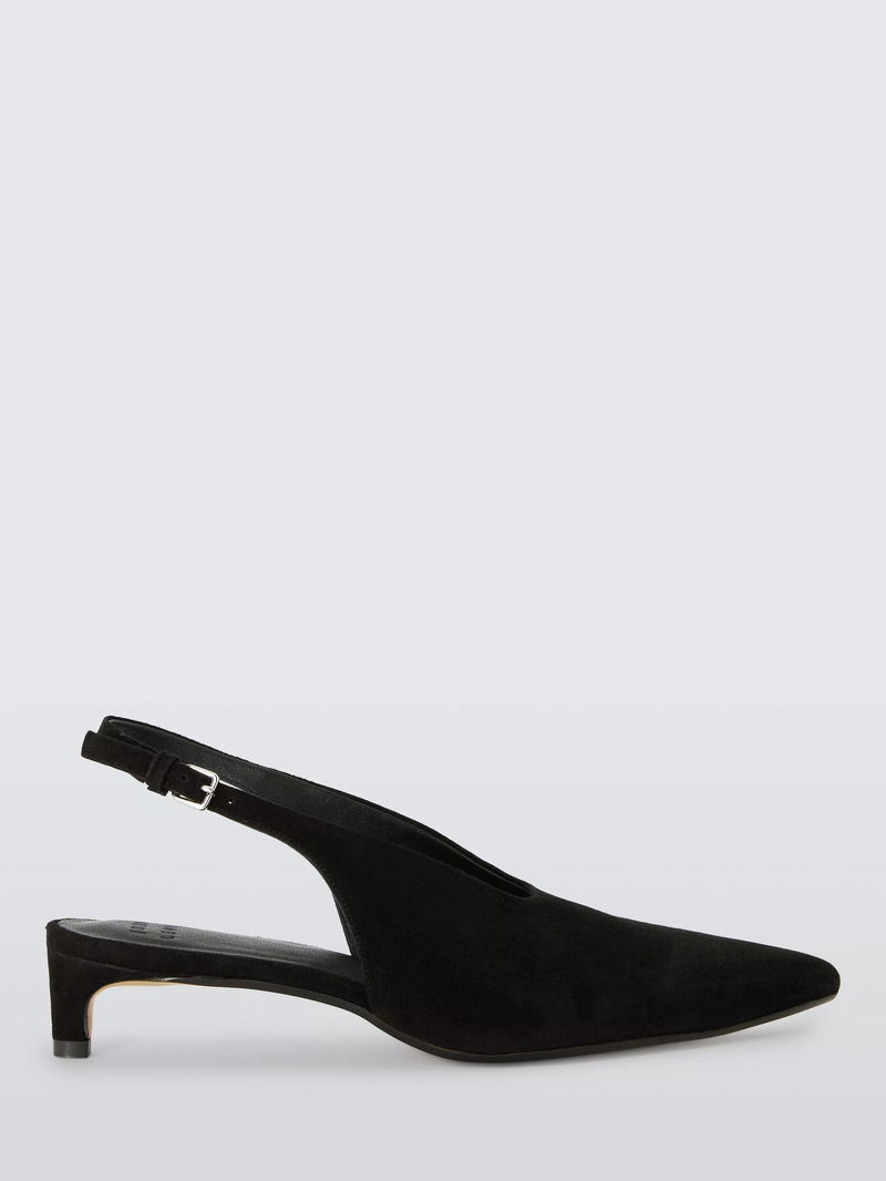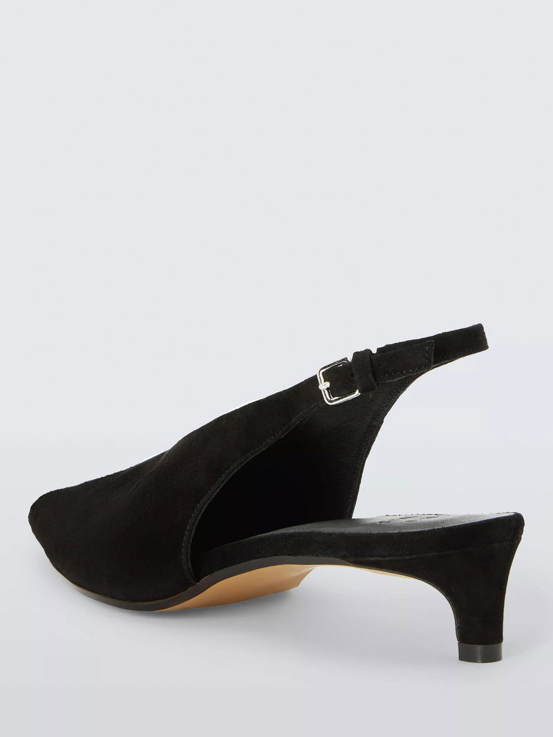 Cassandra Suede High Vamp Pointed Slingback Court Shoes, Black