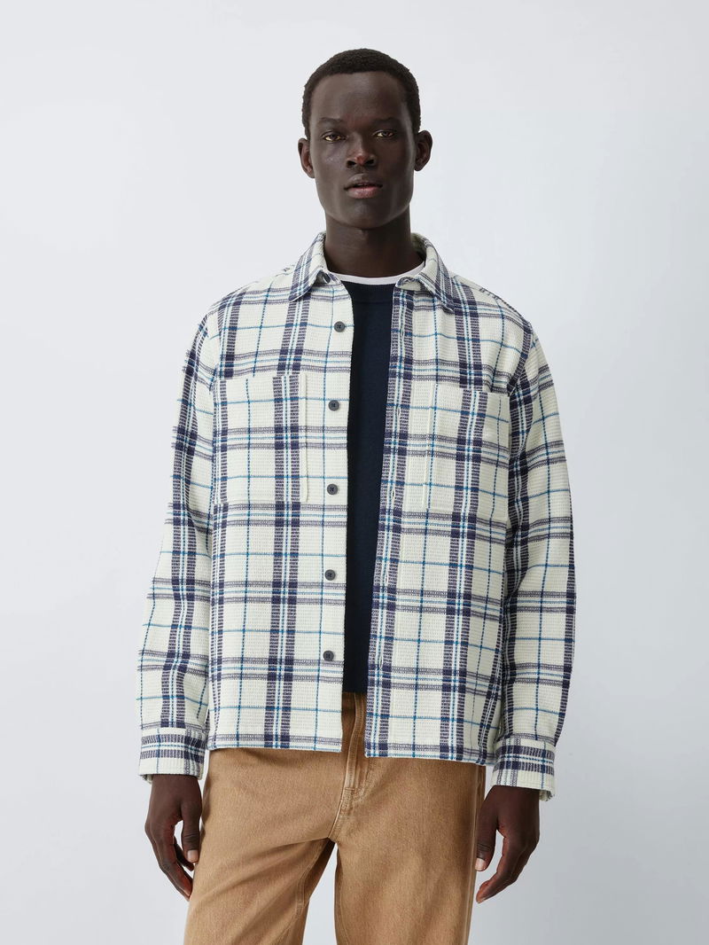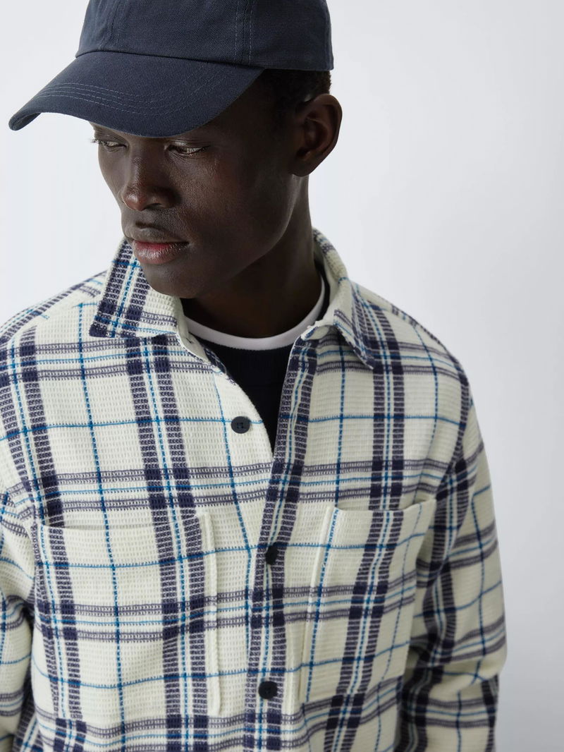 Check Cotton Waffle Knit Shirt, Ecru/Blue