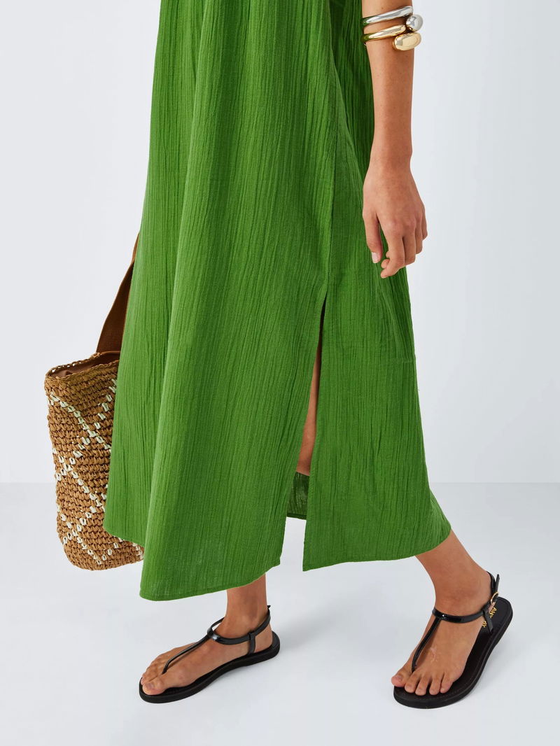 Made in light and airy cotton cheesecloth, this dress is a suitcase staple. With spaghetti straps and a flowing shape, it's ideal for throwing on over your swimwear.