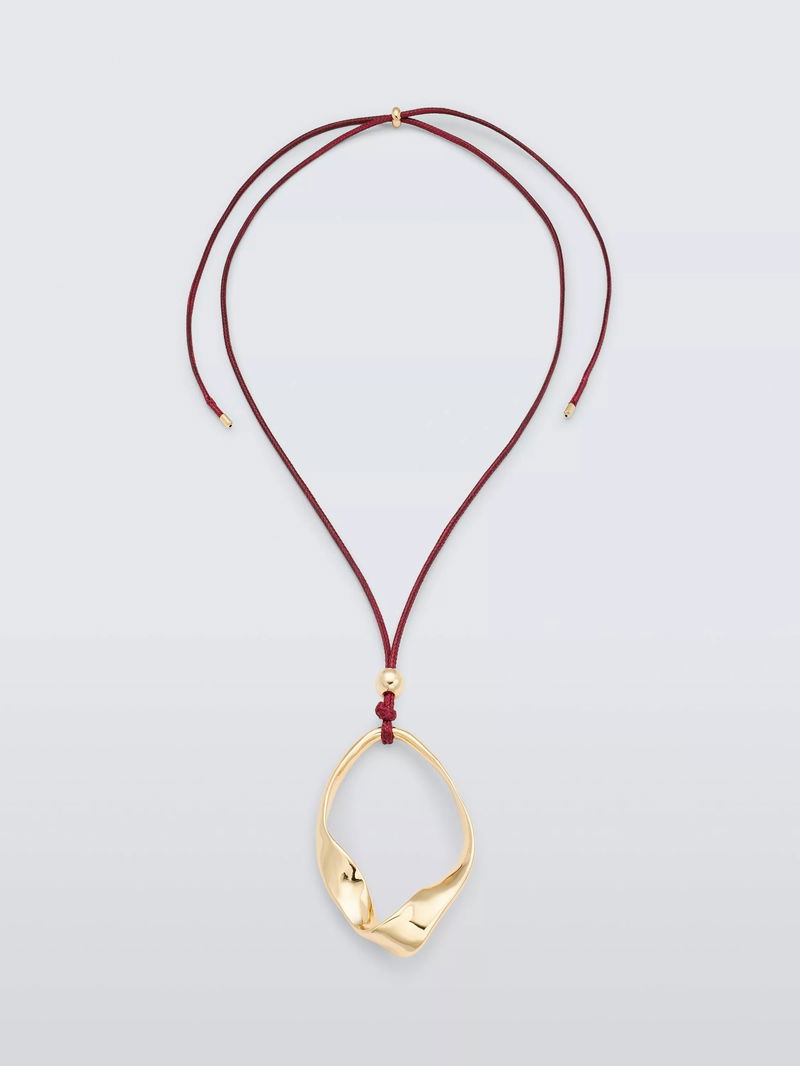 Cord And Metal Twisted Drop Pendant Necklace, Gold