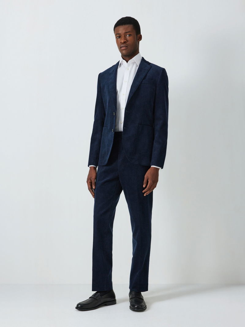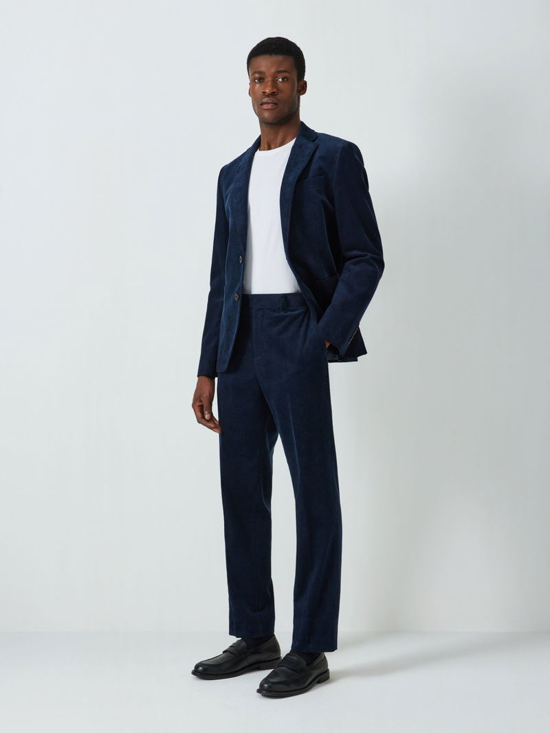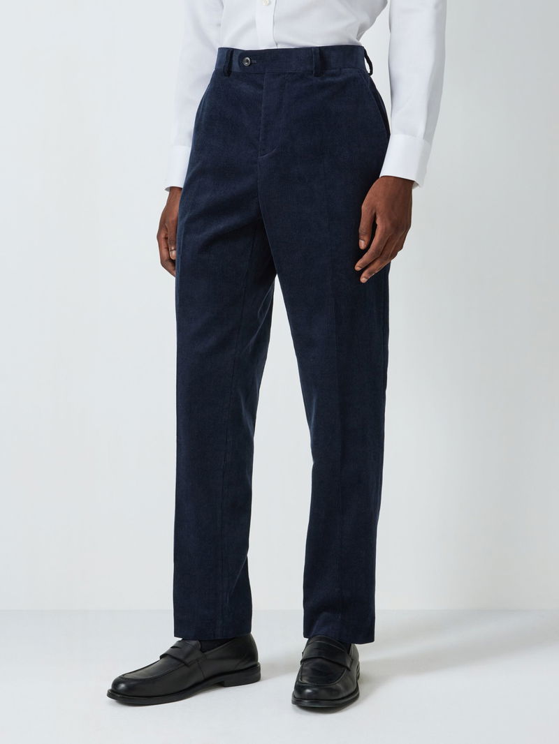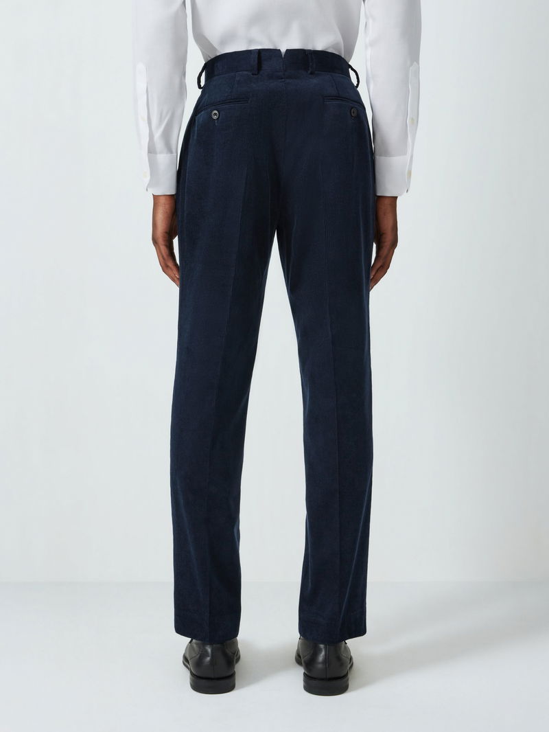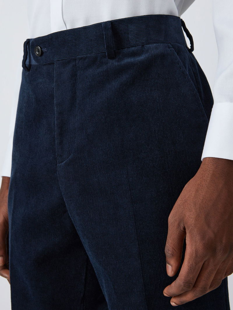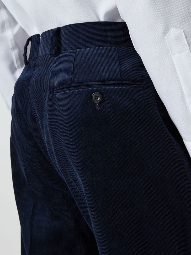 Marking the return of John Lewis's best-selling corduroy range, these suit trousers are made from 14 wale corduroy woven in a super soft cotton blend for extra drape. Tailored to a regular fit specification they feature a mid-rise and a straight leg, finished with AMF stitching on the front pockets and a rounded waistband extension. Inside, the trouser is lined with ecru pocketing and features a striped waistband.