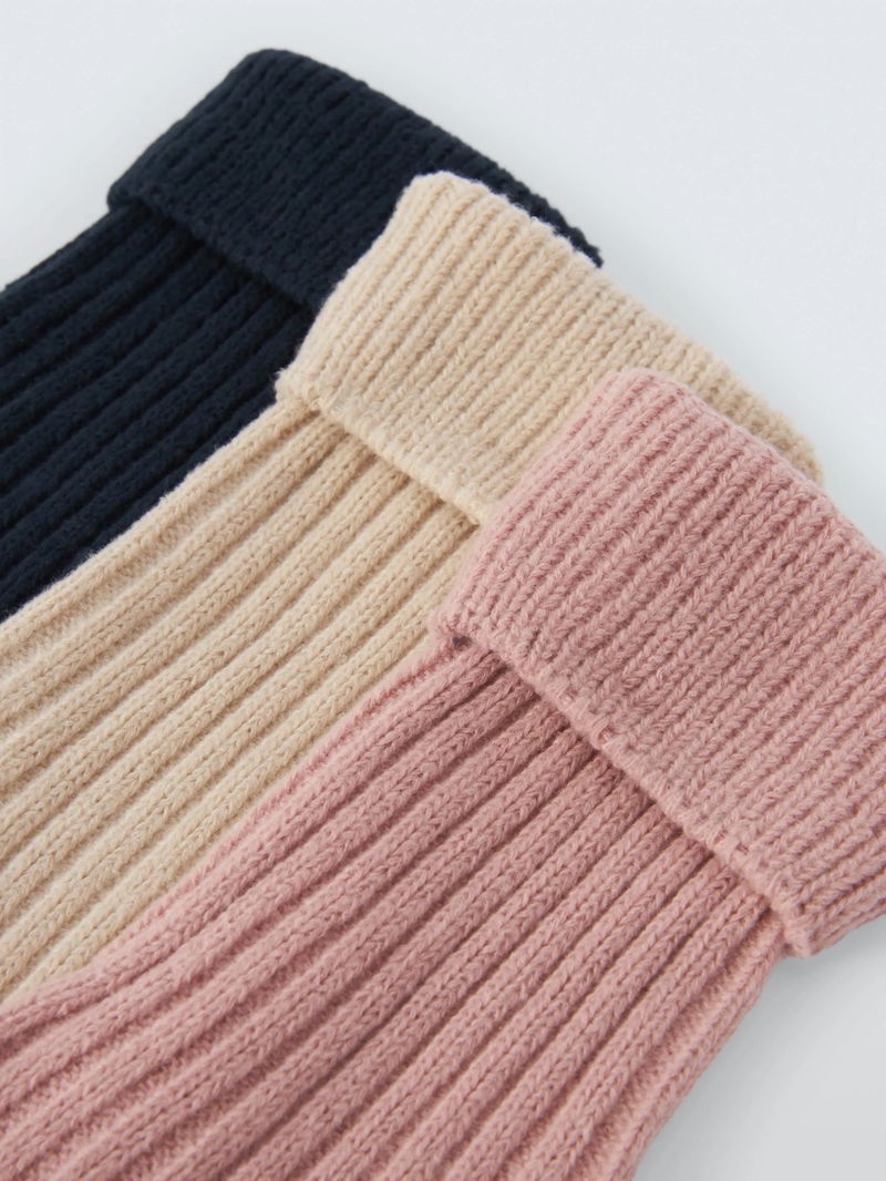 Cosy Roll Top Ribbed Lounge Socks, Pack Of 3, Multi