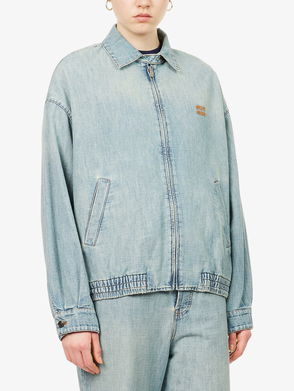Cotton-blend knit bomber jacket, ideal for layering over t-shirts and jeans. Styled with a ribbed collar and hem, metallic buttons and front pockets.
