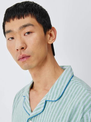 Description: Ideal for those warmer nights, our shortie pyjama set is a comfy treat. Made from a soft cotton jersey, the short sleeve tee top has a one-button collar, while the loose fitting shorts secure with a drawstring waistband. Time to kick back and relax. Materials: 100% bci cotton Product Code: 113272190