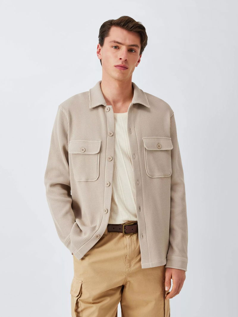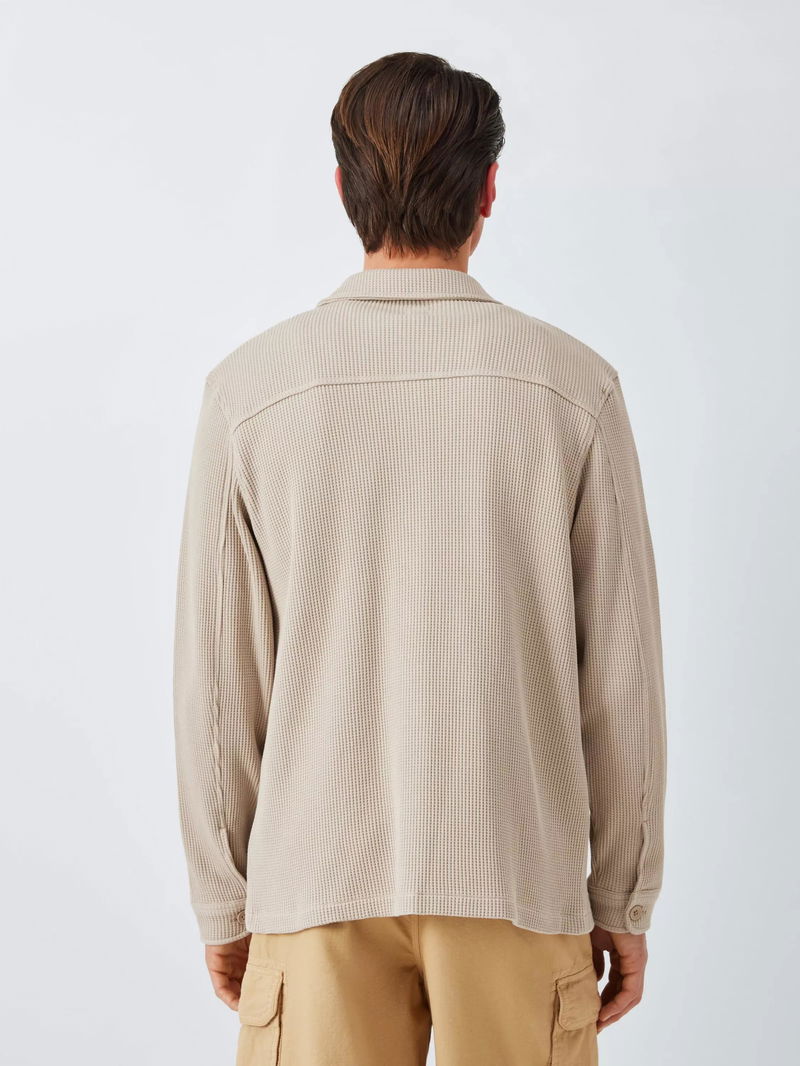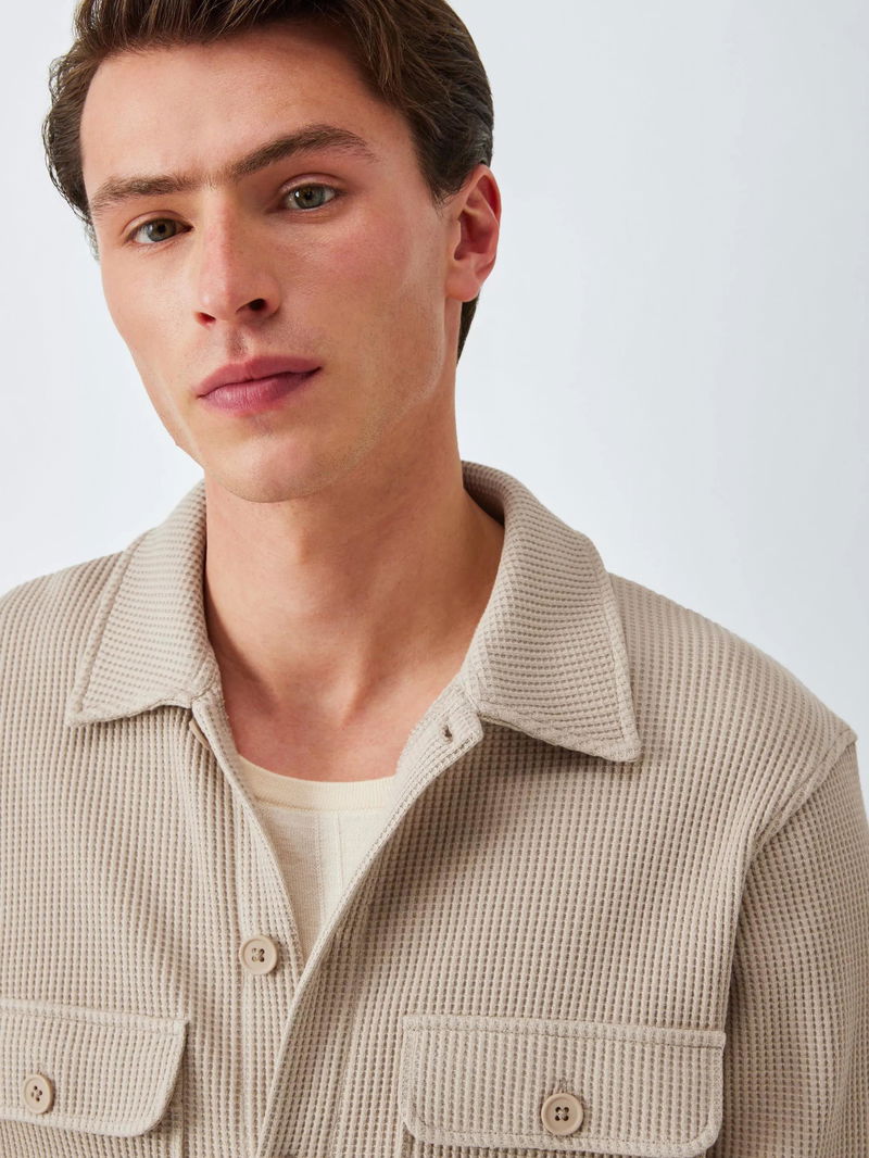 Description: A long-sleeved waffle jersey shirt in pure cotton featuring; 2 front flap patch pockets, front button fastening and working cuffs for added versatility. Materials: 100% Cotton Product Code: 113172112