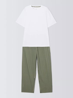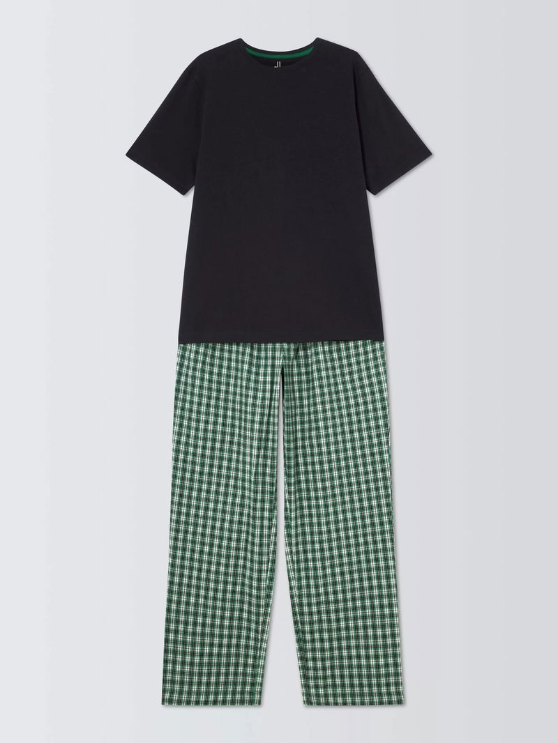 Cotton Short Sleeve Check Trousers Pyjama Set, Green Mid