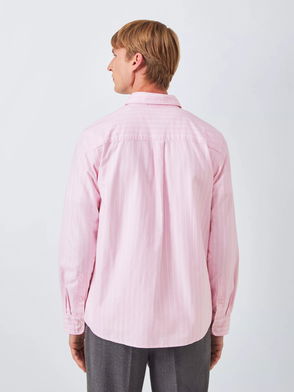 Precisely cut in a tailored fit, this purple stripe shirt is perfect for formal styling. It features a point collar and curved button cuffs.