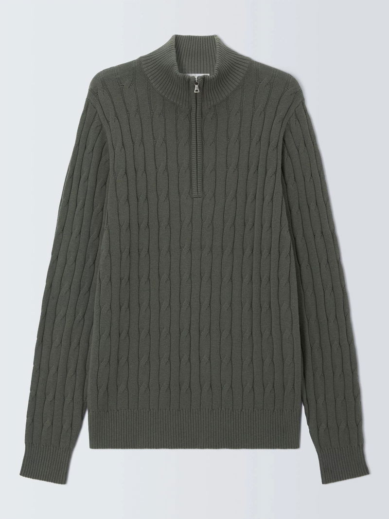 Cotton With Cashmere Half Zip Cable Knit High Neck Jumper