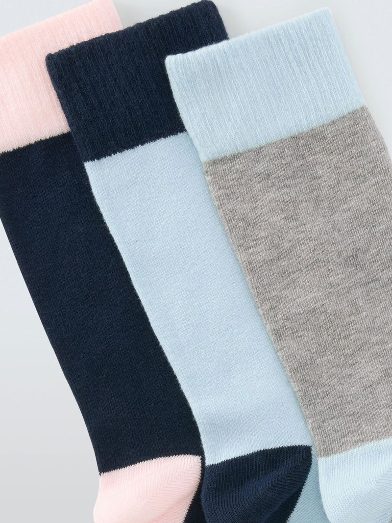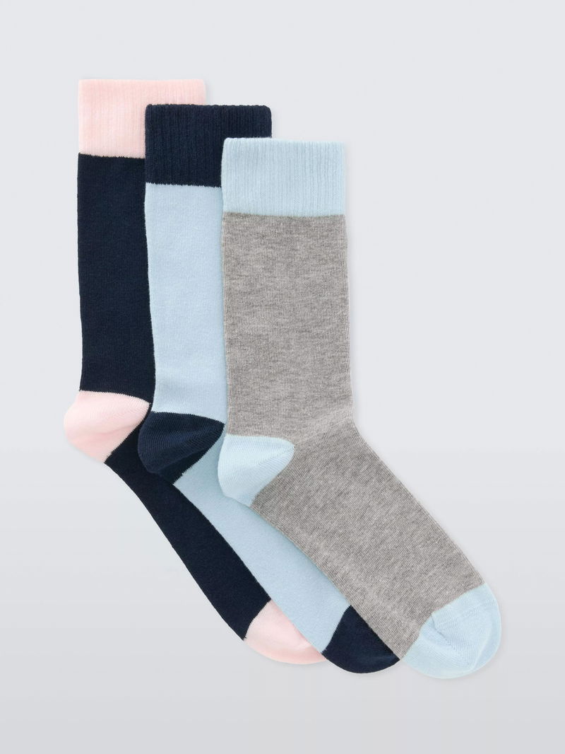 Deep Welt Ankle Socks, Pack Of 3, Blue Multi